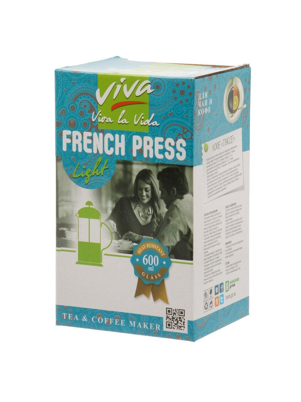 Френч-пресс Barouge Viva 0.6 л — стильное решение для приготовления ароматного кофе или чая дома. Прочный корпус из стекла и металла подчеркивает современный дизайн и долговечность. Подарочная упаковка делает его отличным выбором для подарка. Объем 0.6 л оптимален для семейного чаепития или уютных встреч. Легко ухаживать: подходит для посудомоечной машины.