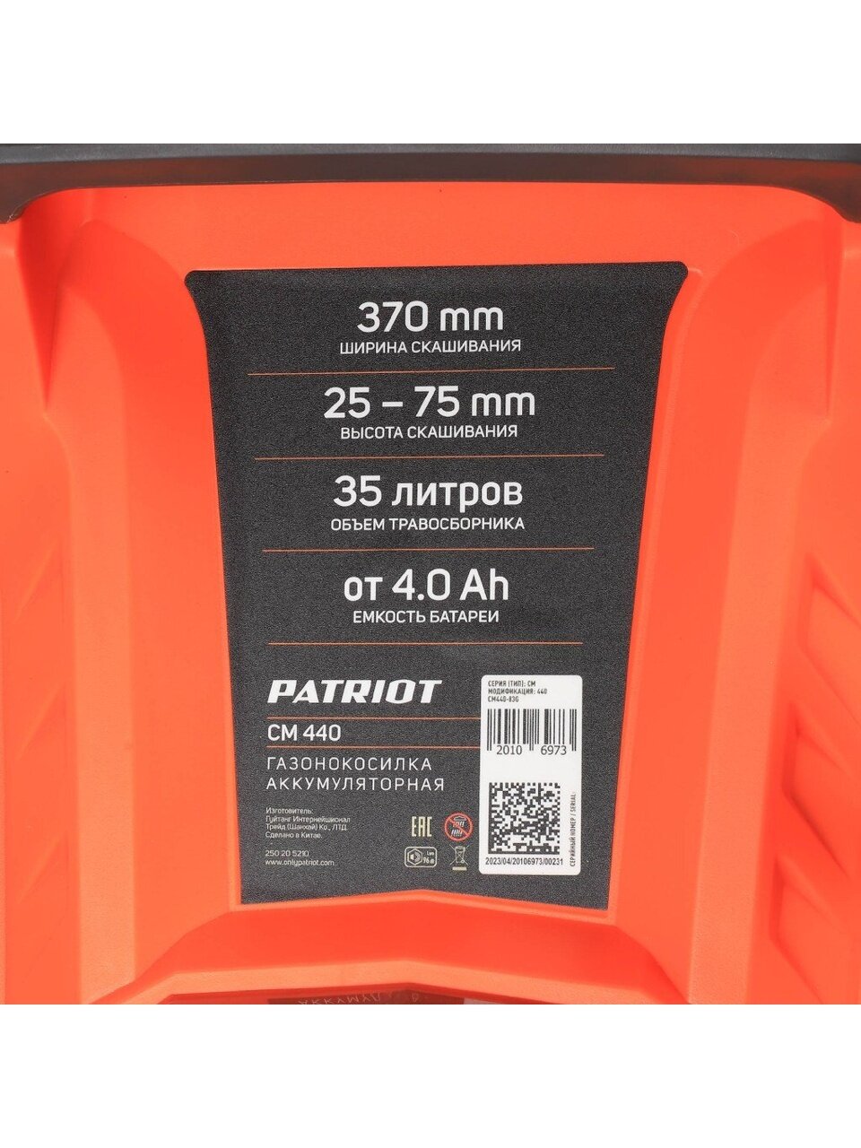Вы можете приобрести «Газонокосилка электрическая, аккумуляторная, Patriot, PT CM 440, 37 см, 35 л, 25-75 мм, 250205210» и другие товары в нашем интернет-магазине в Таганроге по низким ценам и с бесплатным самовывозом.
