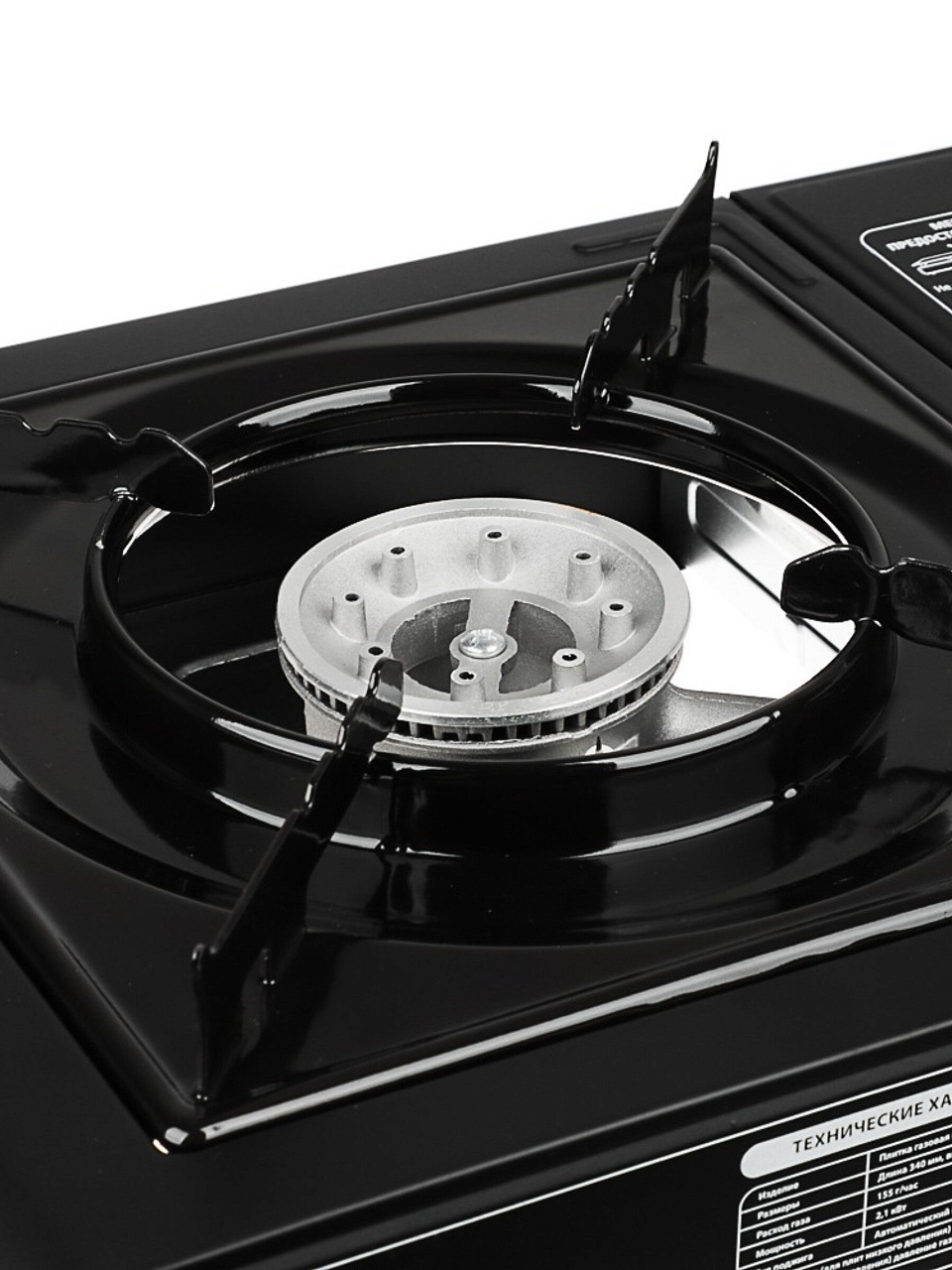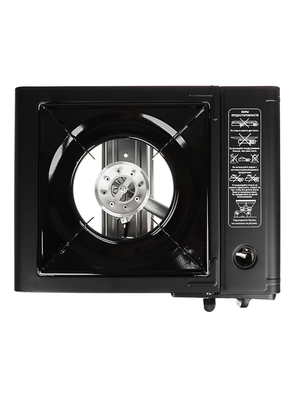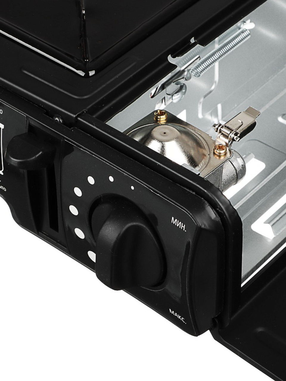 - Плита работает от цанговых баллонов. Есть возможность подключить к большим баллонам через редуктор-переходник (редуктор-переходник в комплектацию не входит).