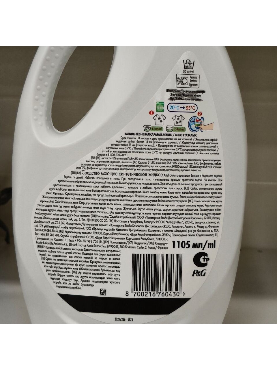 Вы можете приобрести «Гель для стирки Ariel, 1.105 л, для цветного и белого белья, Color, Ваниль и кедровое дерево» и другие товары в нашем интернет-магазине в Курске по низким ценам и с бесплатным самовывозом.