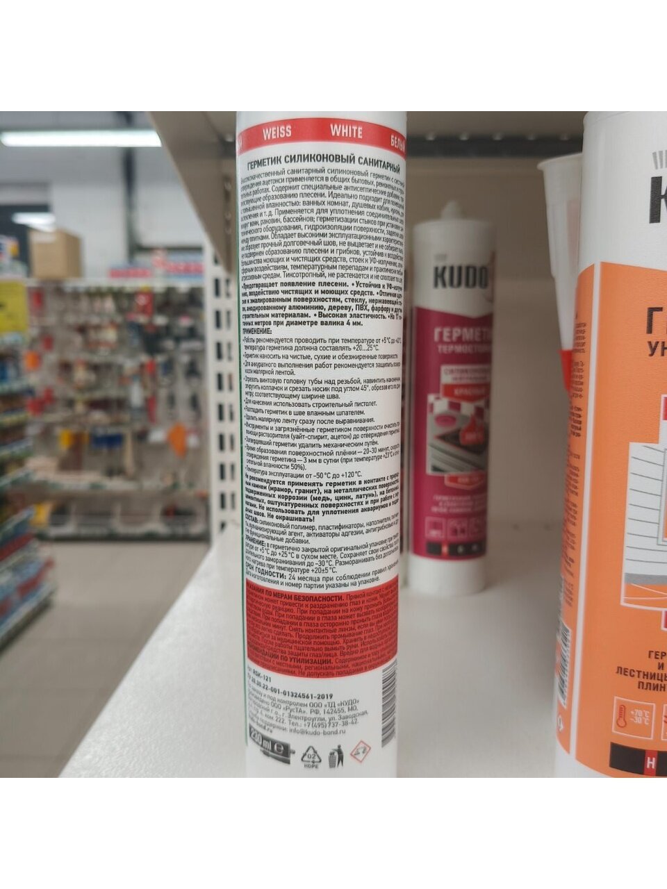 Высококачественный санитарный силиконовый герметик KUDO с системой отверждения ацетокси применяется в общих бытовых, ремонтных и строительных работах.