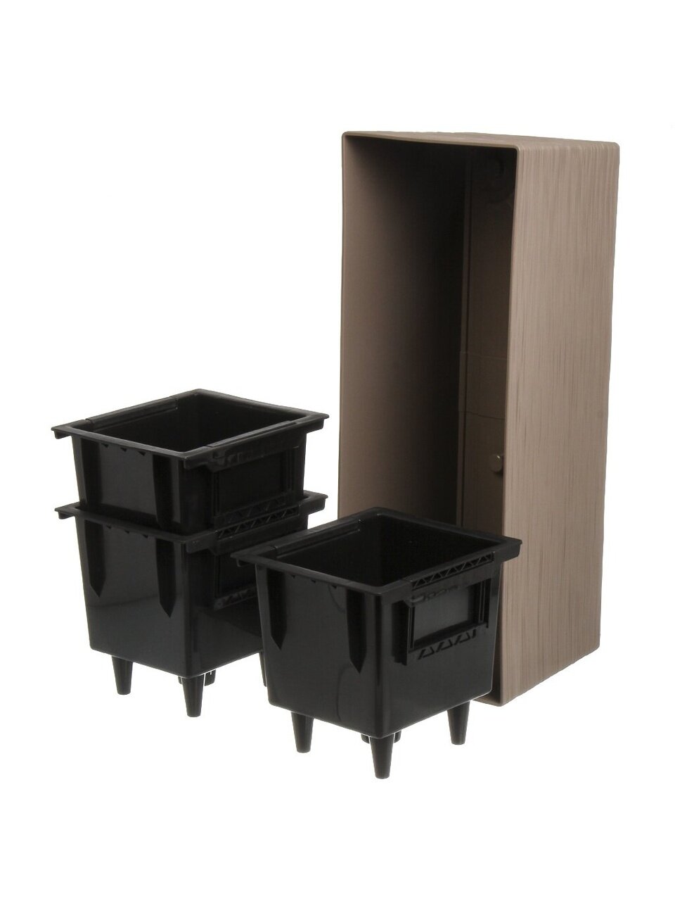 Трехсекционная конструкция обеспечивает удобство в уходе за растениями и возможность комбинирования различных видов цветов или трав.