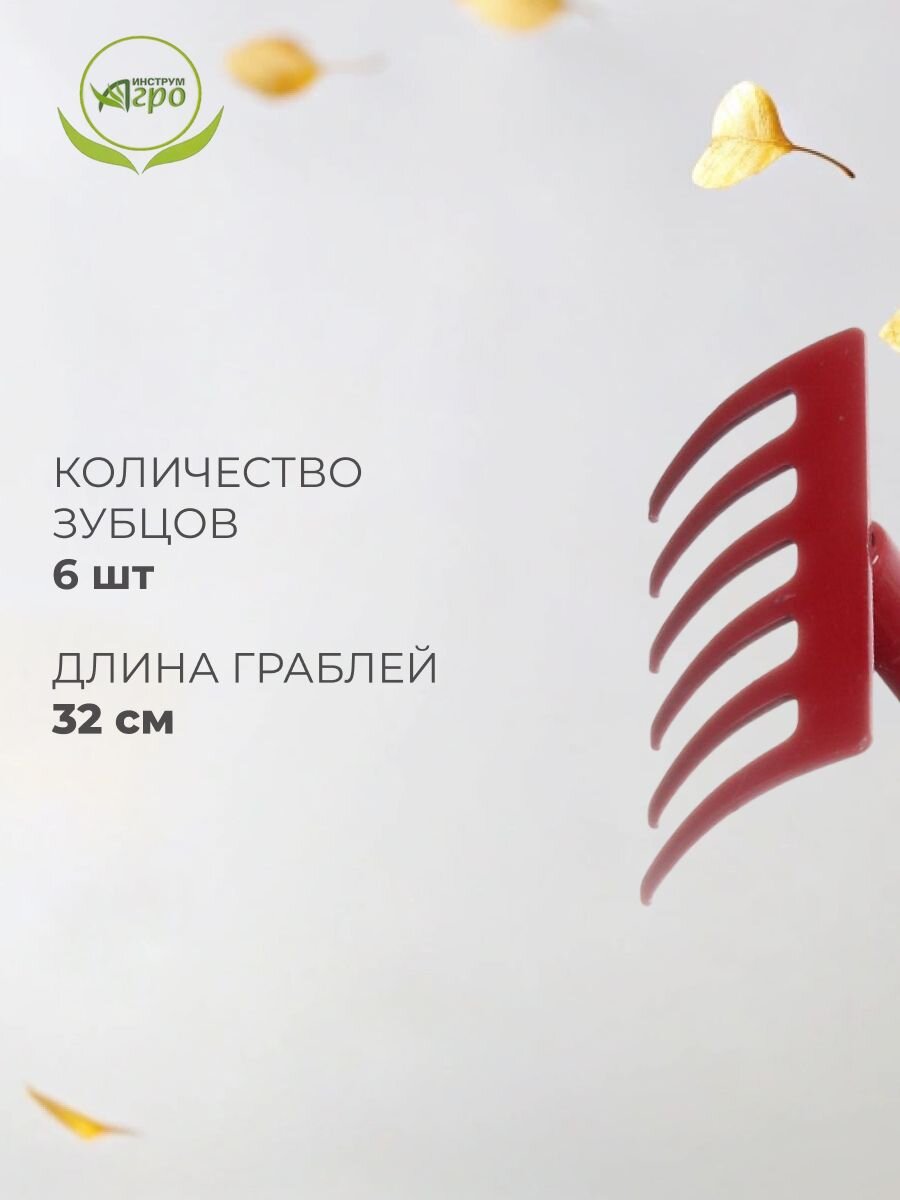 Садовые грабли длиной 32 см с черенком используются для выравнивания грунта, а также очистки садовых участков от различного мусора, скошенной травы и опавших листьев.