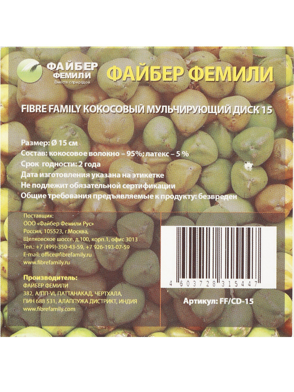 Круг приствольный из кокосового волокна 15 см Fibre Family — эффективная мульча для защиты и питания растений, продлевает влажность почвы, экономит время и силы садовода.