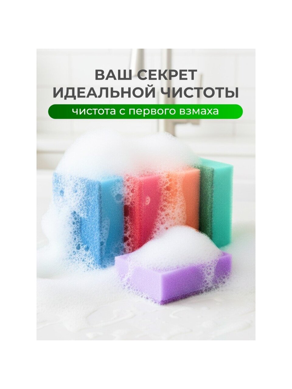 Не повреждает поверхности и не оставляет следов. В каждой упаковке по десять изделий из поролона пяти разных цветов и жесткого абразивного слоя зеленого цвета.
