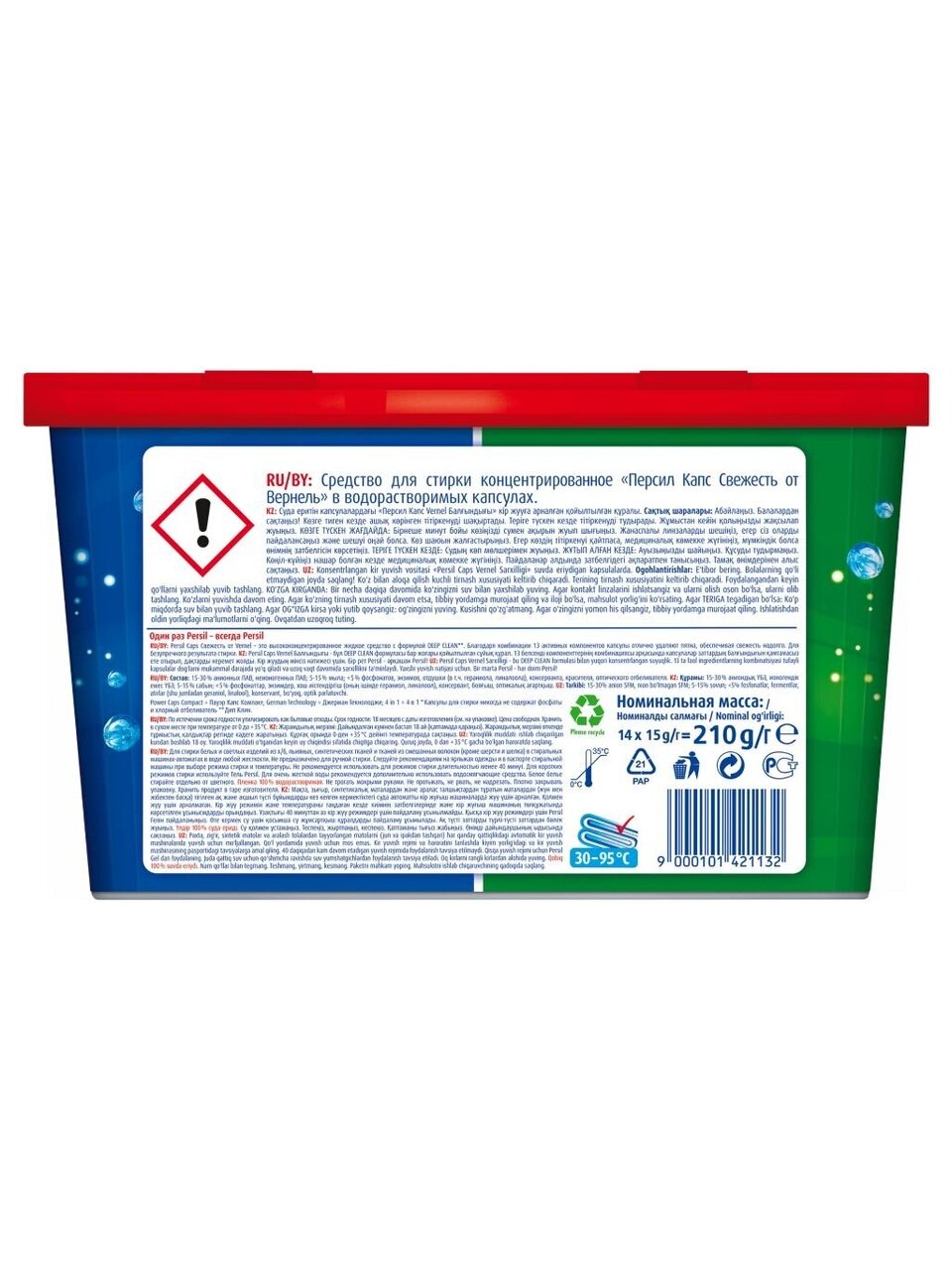 Подходит для воды любой жёсткости, 30-60°С: 1 капсула - 1 стирка, 3 капсулы - для сильных загрязнений, жесткой воды, больше 7 кг. Следуйте рекомендациям на ярлыках одежды и в паспорте стиральной машины при выборе режима стирки и температуры. Не рекомендуется использовать для режимов стирки длительностью менее 40 минут. Для коротких режимов стирки используйте гели для стирки Persil.