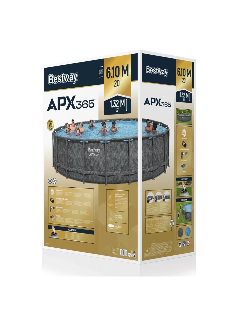Бассейн Bestway оснащен передовыми технологиями, такими как защита от атмосферных воздействий Polar-Shield, что обеспечивает долговечность и надежность конструкции. Каркас из коррозионностойкой оцинкованной стали гарантирует устойчивость и безопасность, а лестница из того же материала обеспечивает удобный доступ в бассейн.