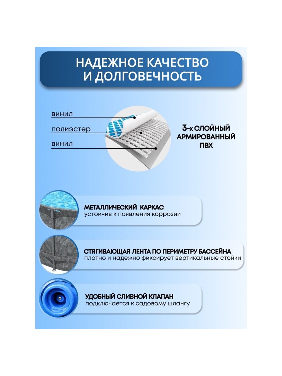 - технология Polar-Shield: защита от атмосферных воздействий (о подготовке бассейна к зиме можно прочитать во вложенной инструкции);