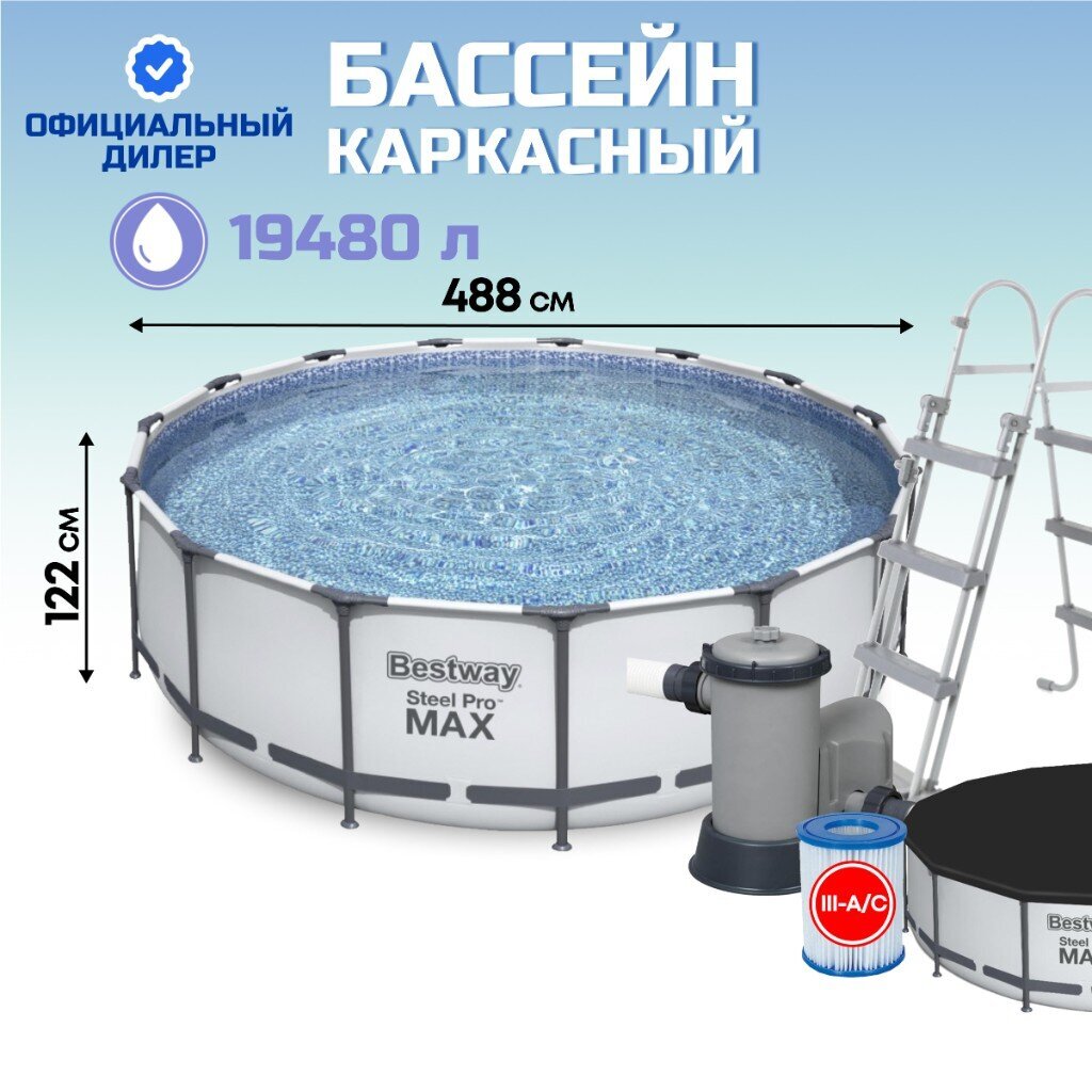 Вы можете приобрести «Бассейн каркасный Bestway, 488х122 см, Steel Pro Max, 5612Z, фильтр-насос, лестница, тент, 19480 л» и другие товары в нашем интернет-магазине в Липецке по низким ценам и с бесплатным самовывозом.