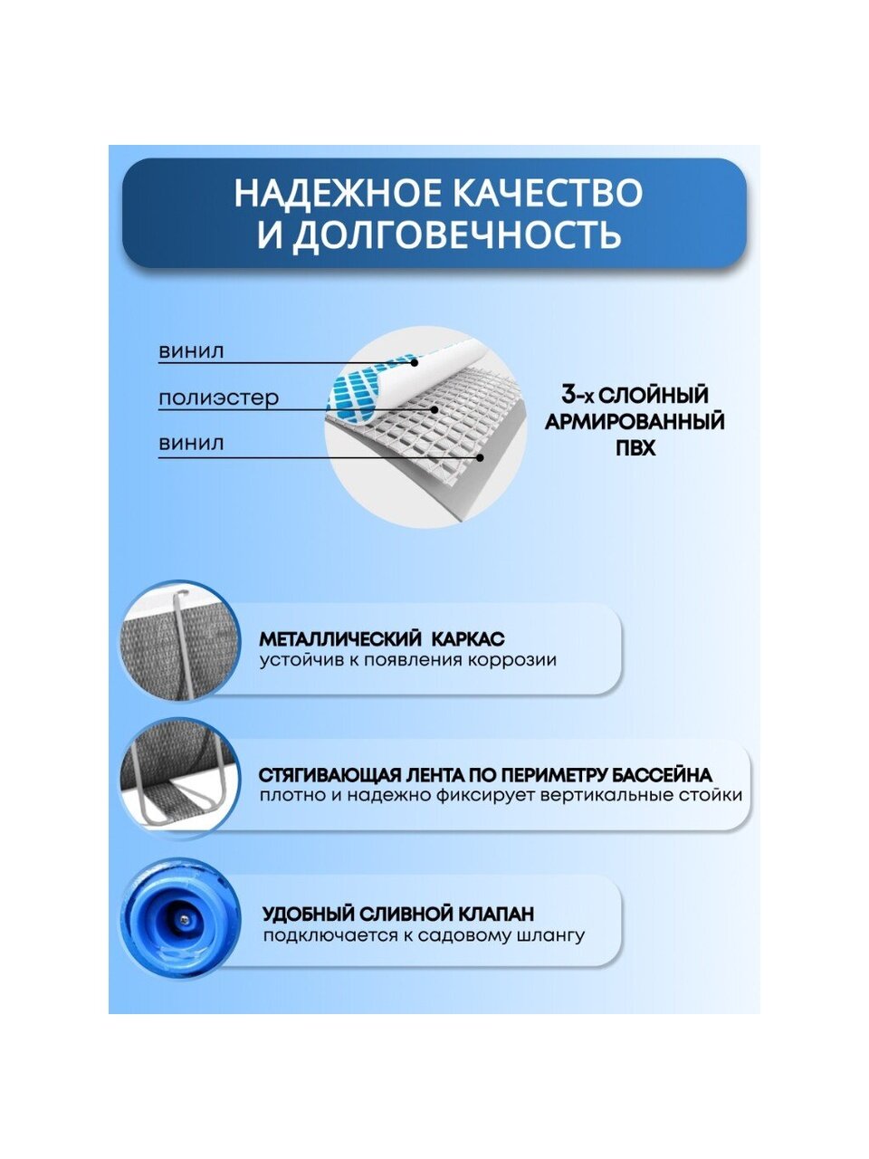 - Простота установки: бассейн легко собрать благодаря продуманной конструкции.