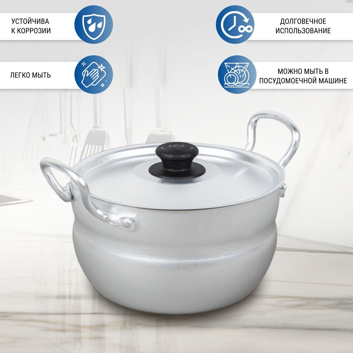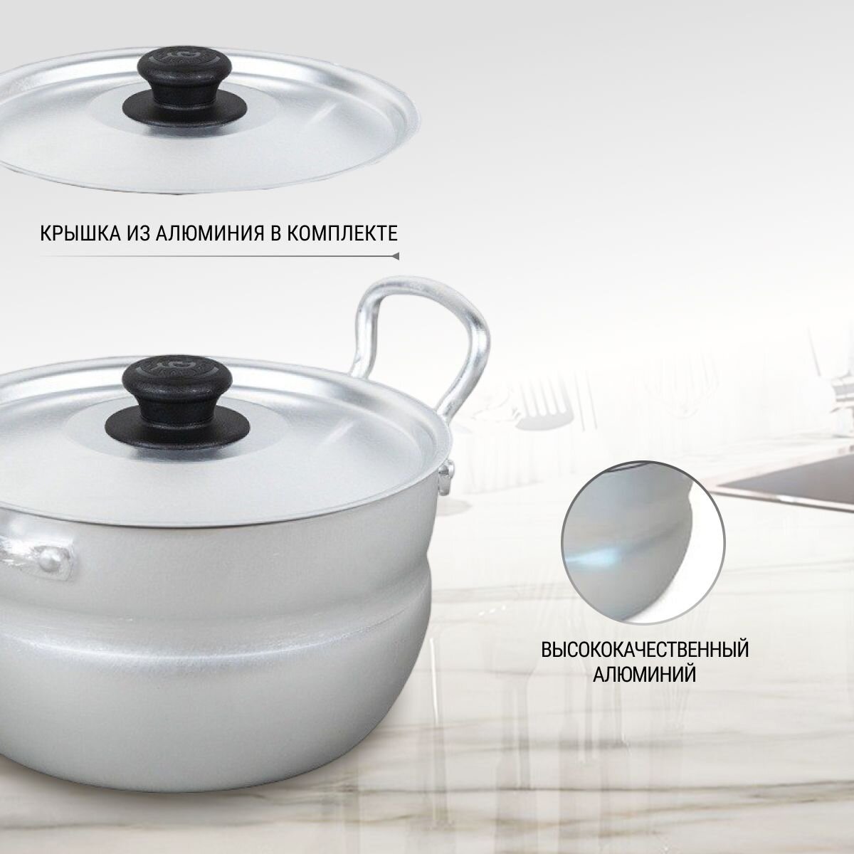 Кастрюля алюминиевая Калитва 4.5 л с крышкой — оптимальное решение для дома и дачи: легкая, вместительная, долговечная. Гарантия 24 месяца, подходит для любых блюд.