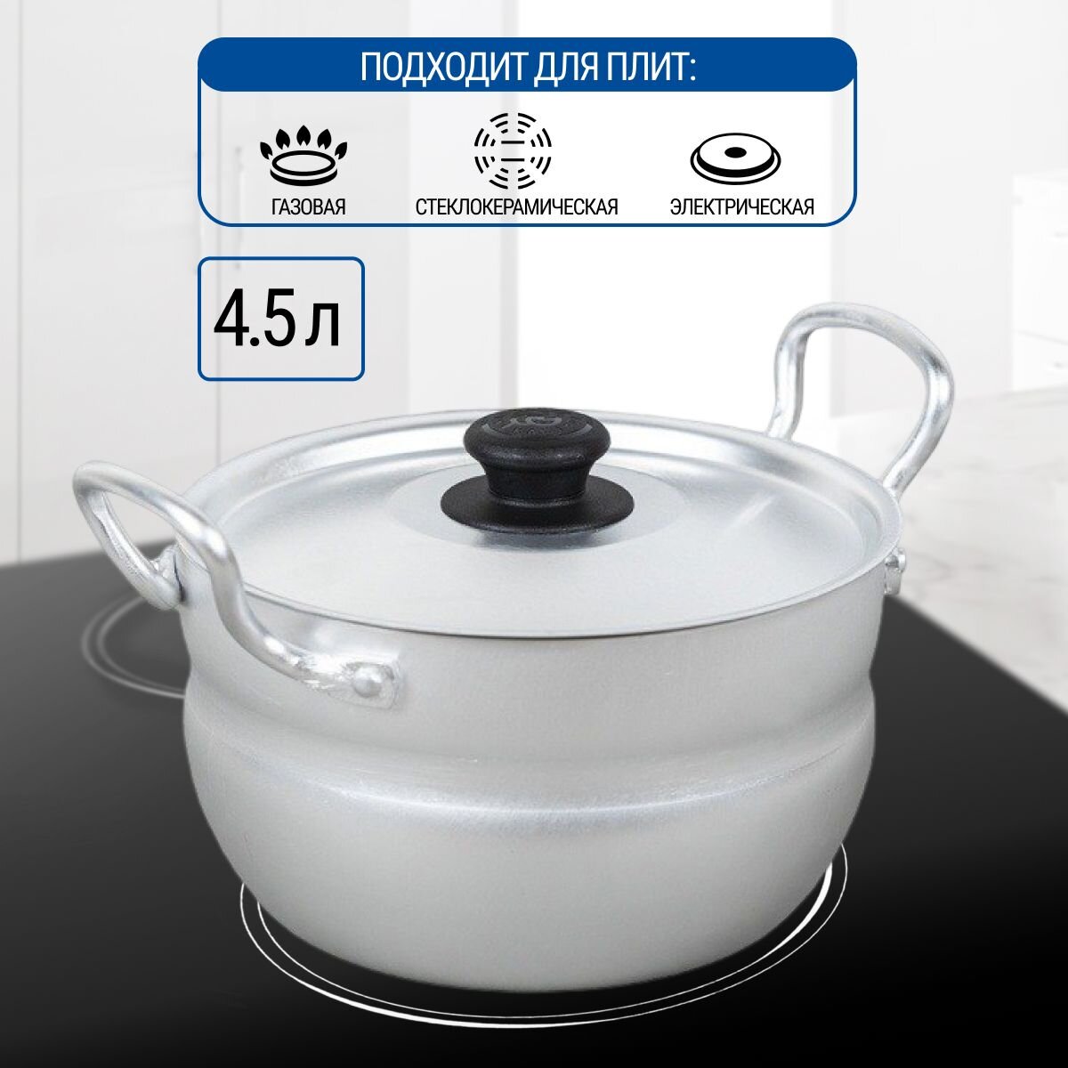 Закажите алюминиевую кастрюлю Калитва 4.5 л по выгодной цене — это надежный выбор для дома, дачи и подарка. Быстрая доставка, гарантия производителя 24 месяца, проверенное качество от российского бренда.