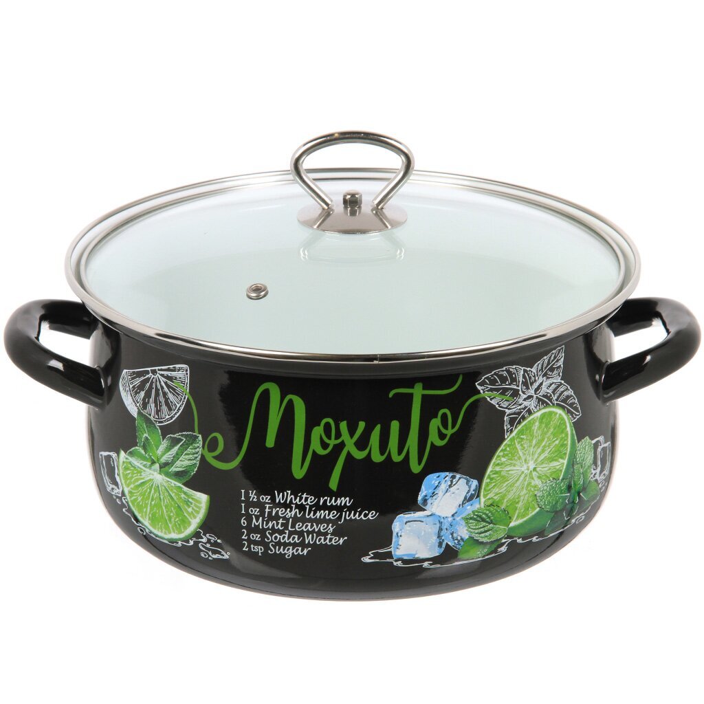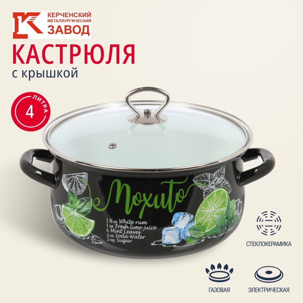Кастрюля эмалированная 4 л Керченский металлургический завод «Мохито» — идеальный выбор для семьи: долговечная эмаль, стеклянная крышка, стильный декор, выгодная цена.