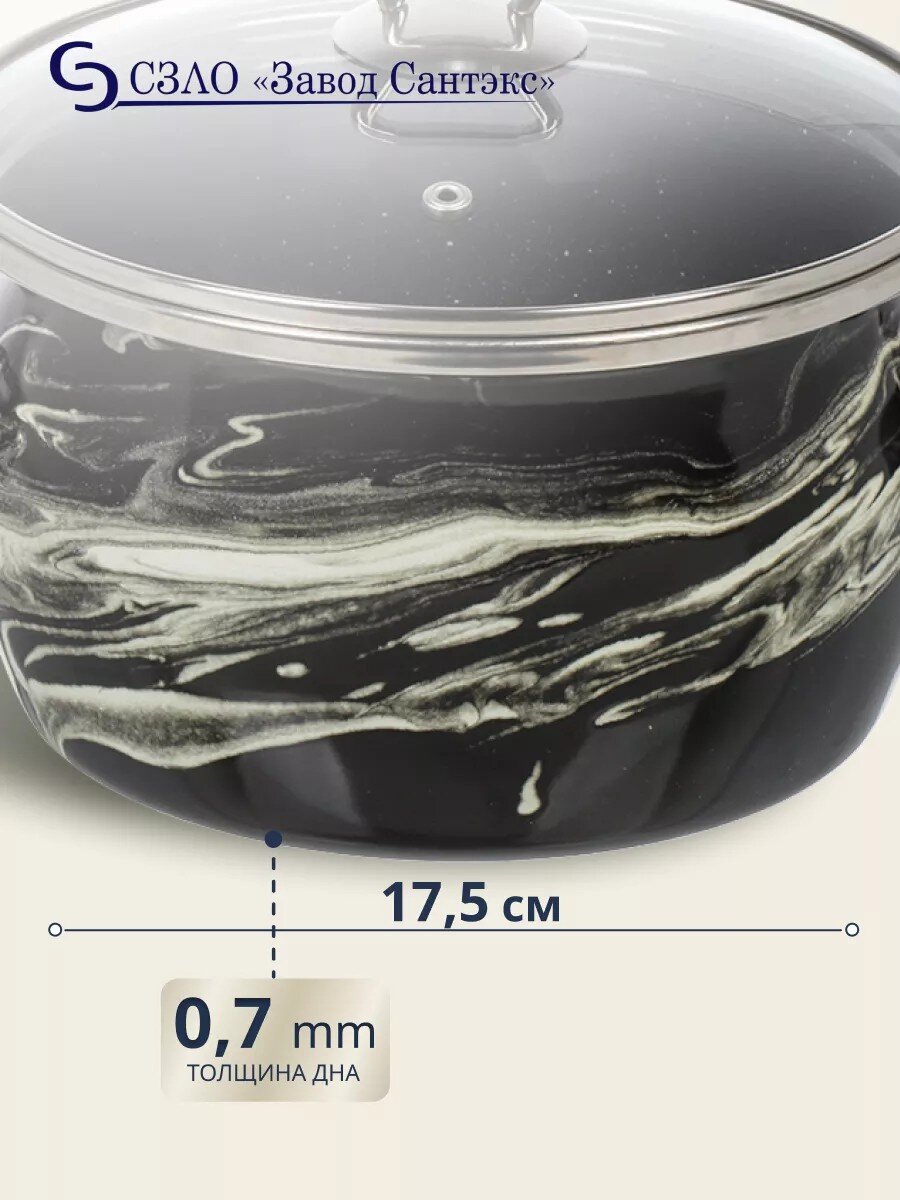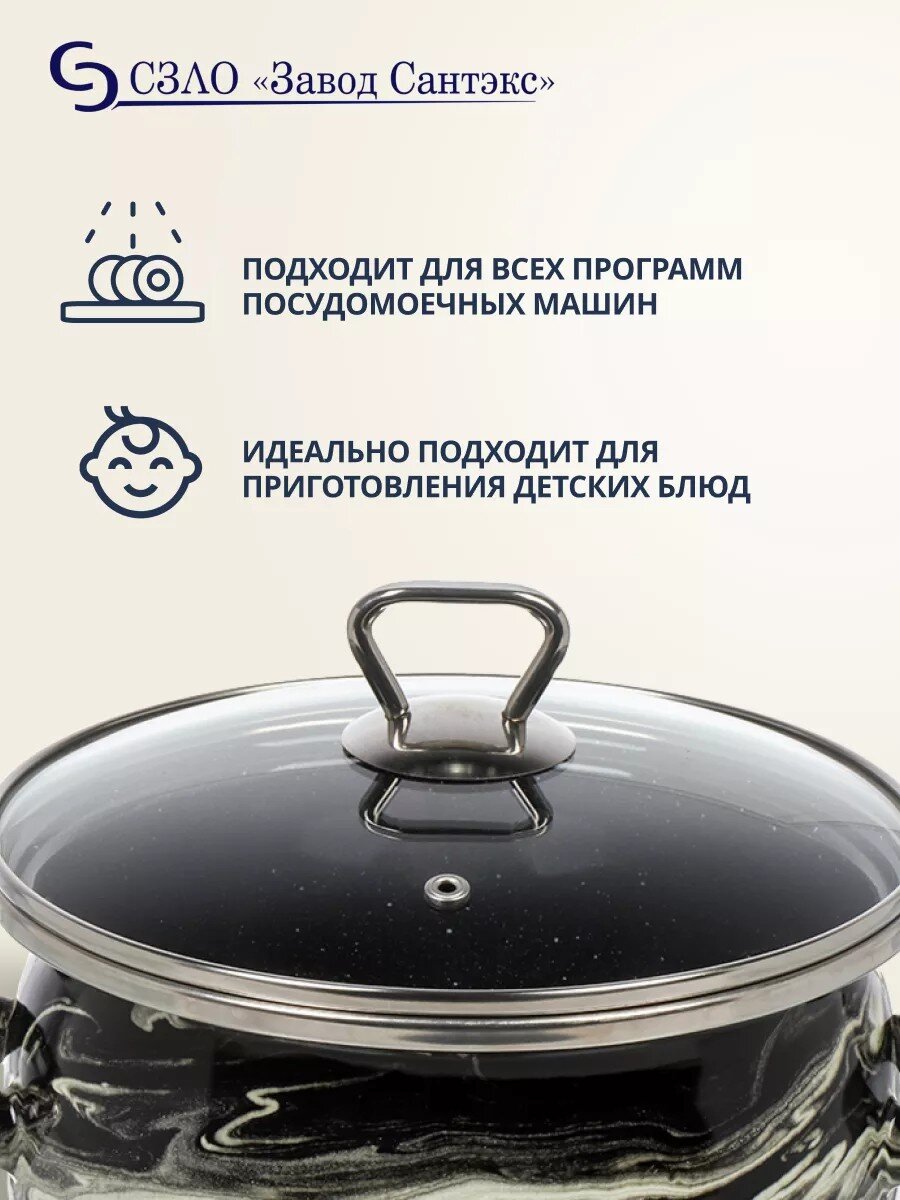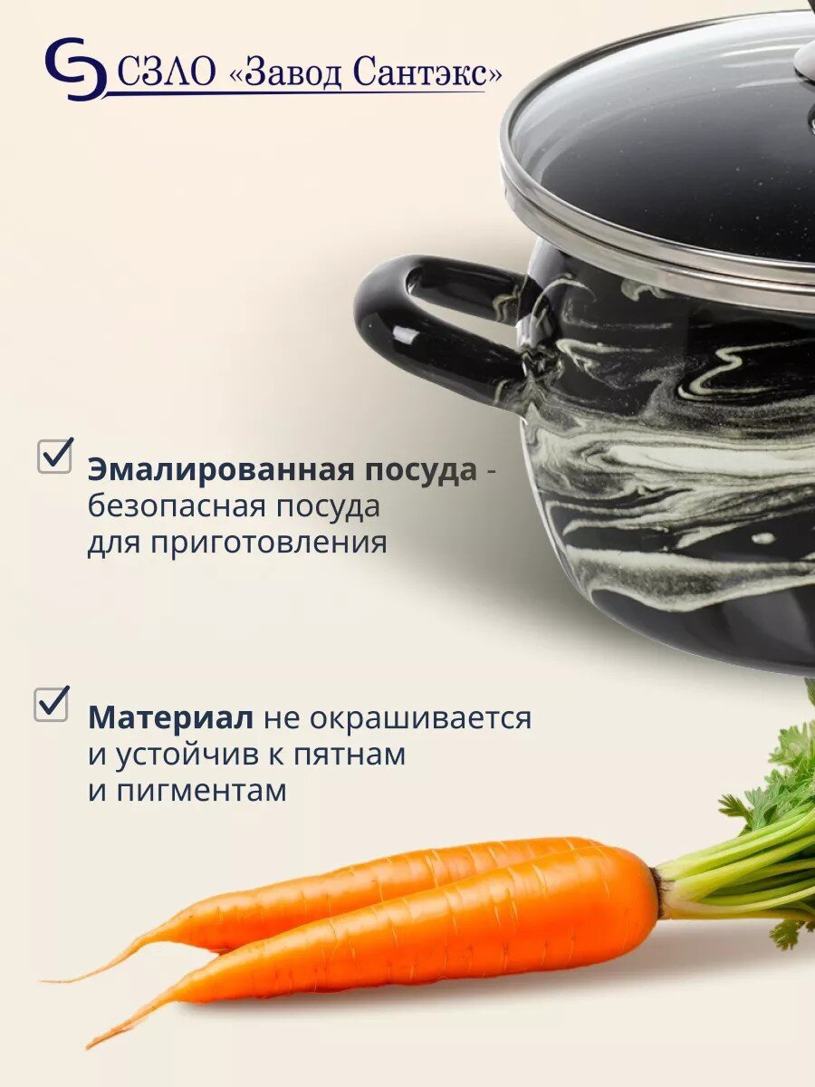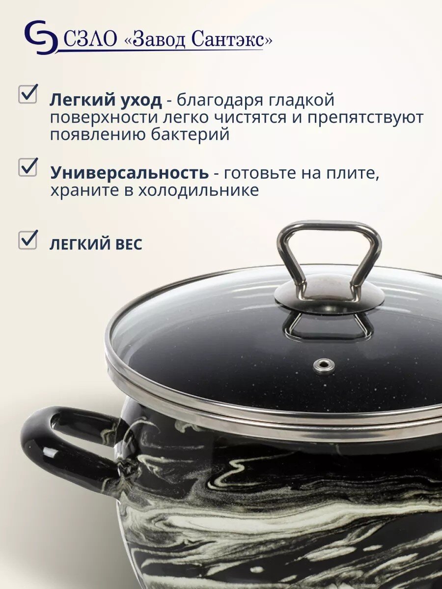 Эмалированная кастрюля Сантэкс 3 л: универсальное решение для индукции и любых плит, стильный дизайн, гарантия 2 года, выгодная цена.