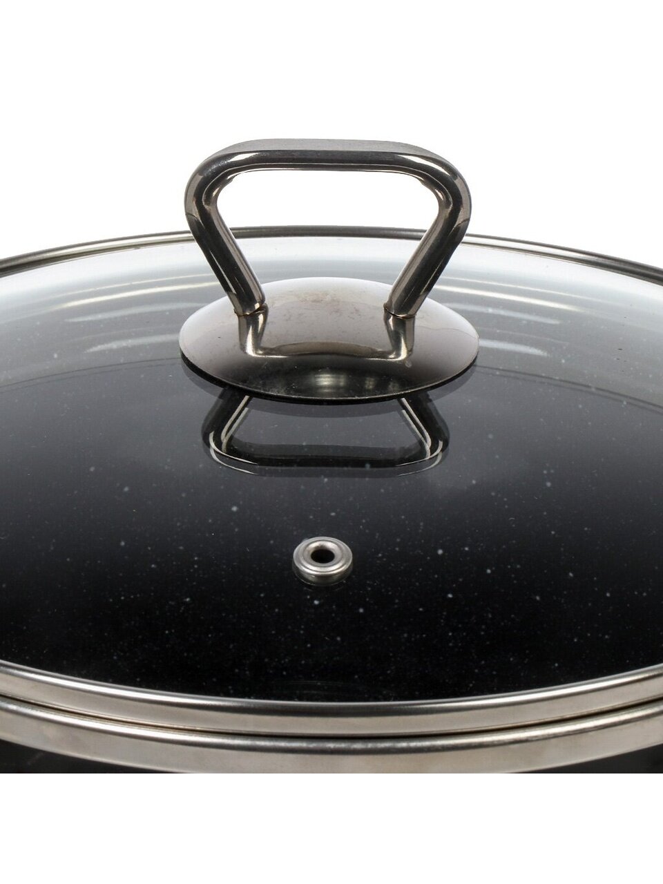 - Объем 3 л, сферическая форма, прочная эмалированная сталь и стеклянная крышка с клапаном — удобно для семьи и долговечно