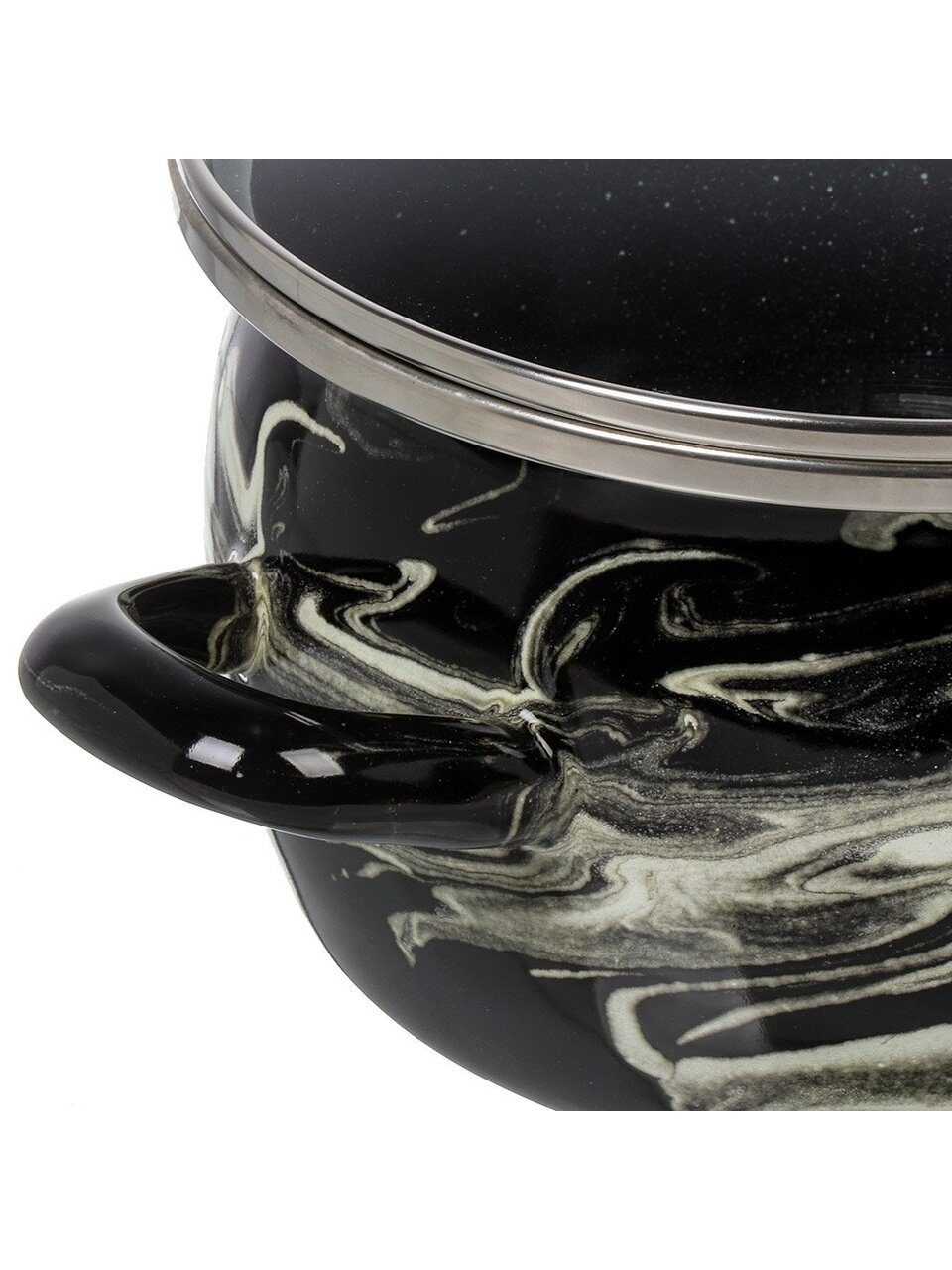 Эмалированное покрытие не впитывает запахи, легко моется, подходит для любых плит и не требует сложного ухода. Черно-белый дизайн универсален для любого интерьера.