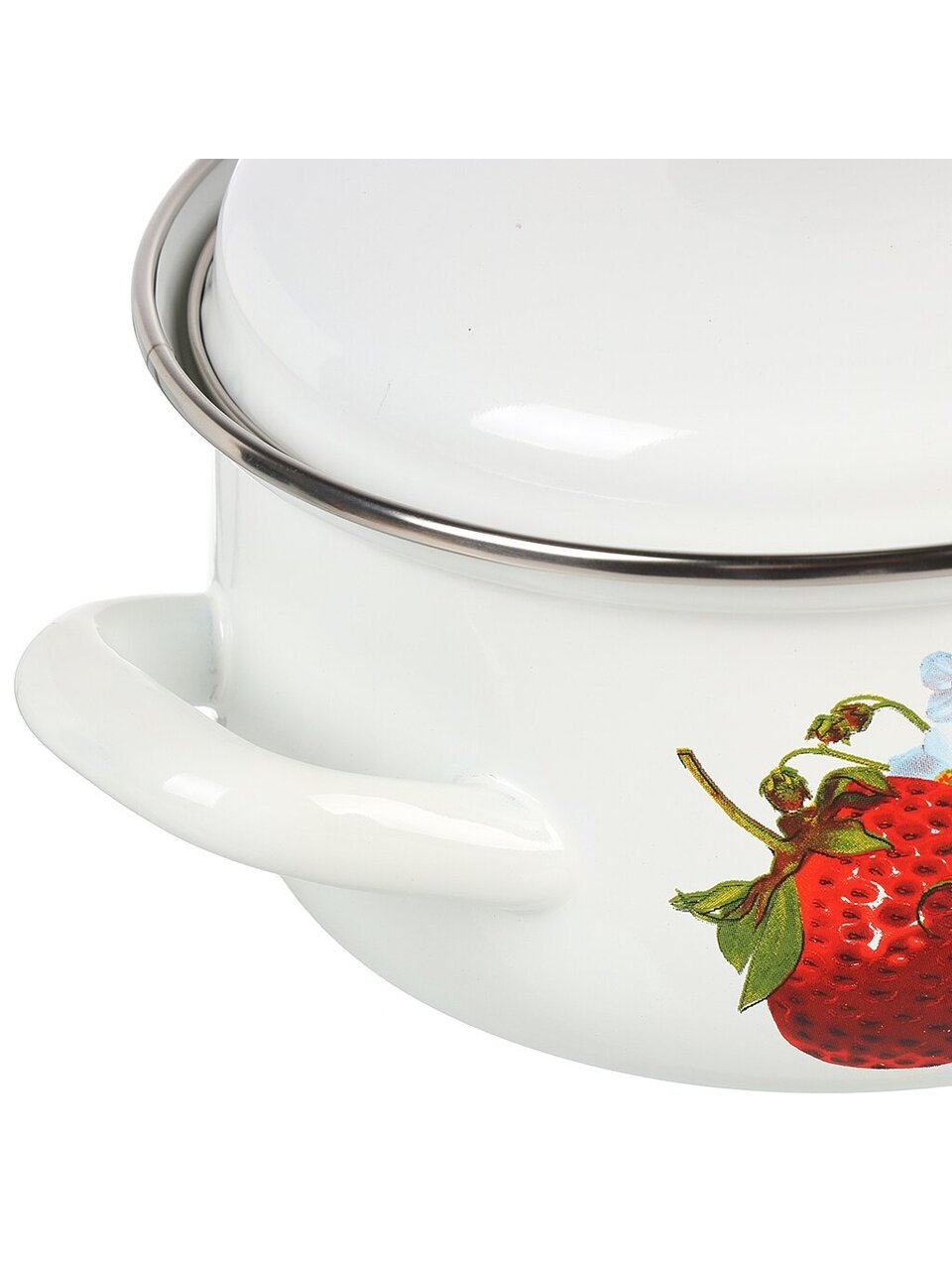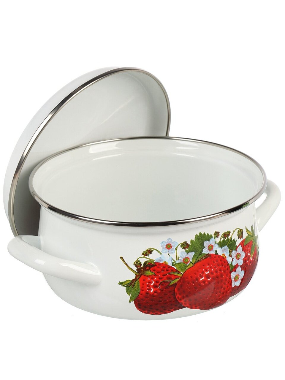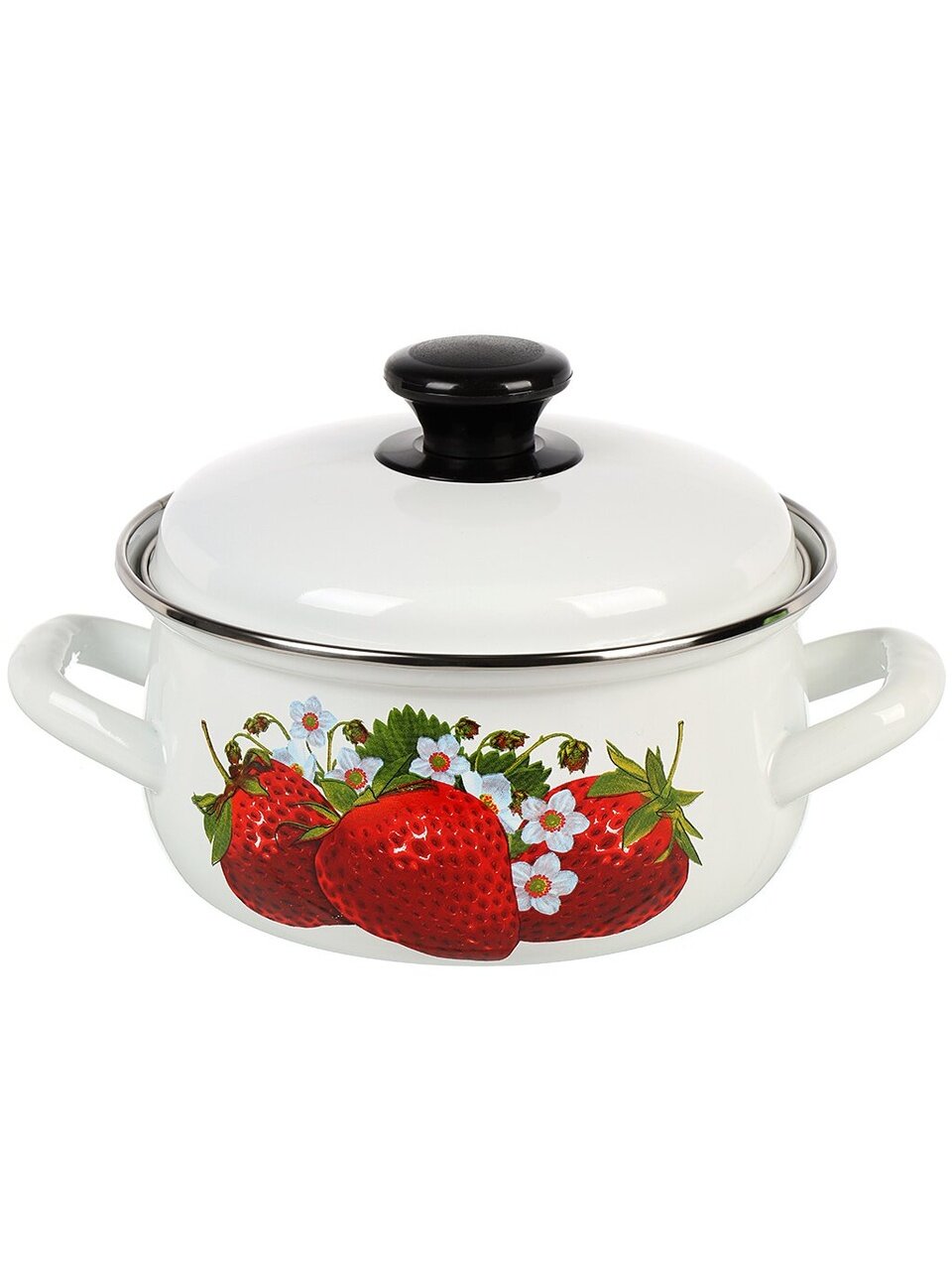 Кастрюля эмалированная 1.5 л с крышкой: долговечная сталь, стильный дизайн «Клубника садовая», идеальный выбор для дома и дачи — выгодно и надолго.