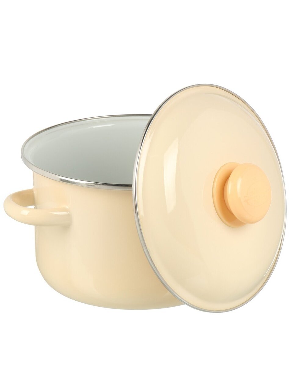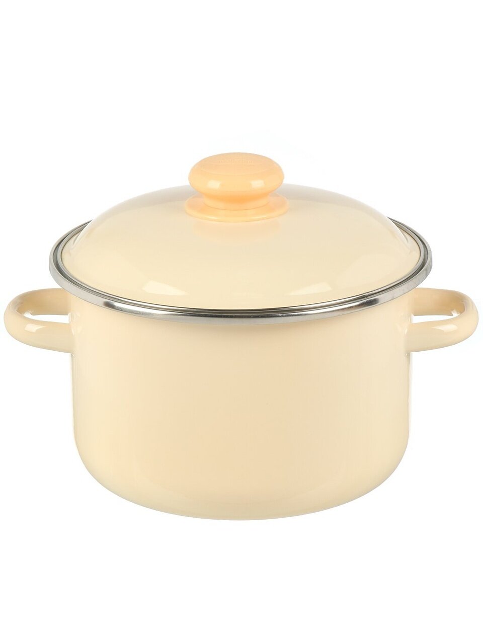 Кастрюля эмалированная 3 л для индукции — идеальный выбор для дома и дачи: долговечная сталь, стиль слоновая кость, подходит для всех плит, легко мыть.