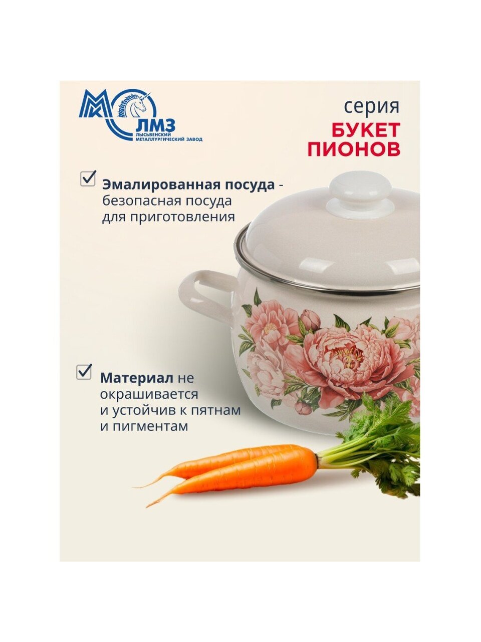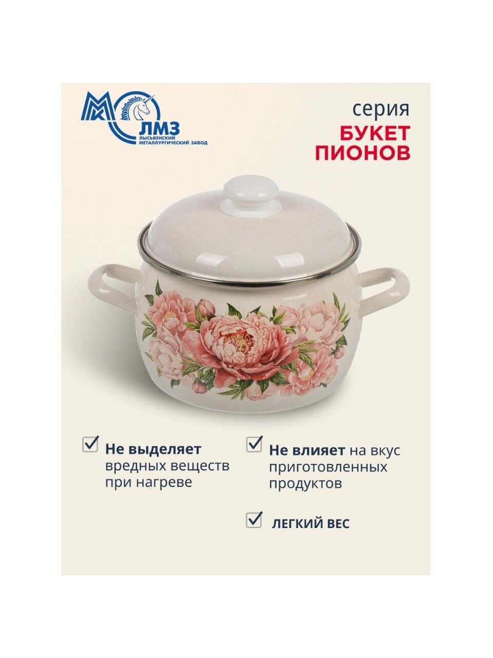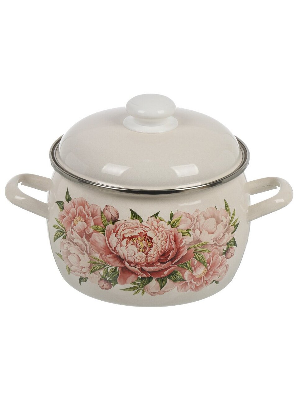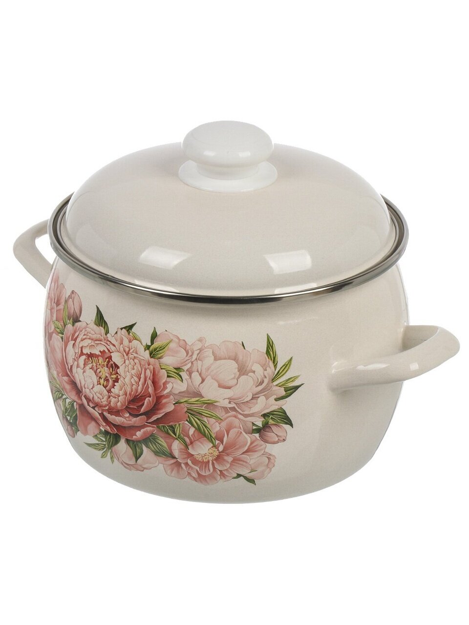 Вы можете приобрести «Кастрюля эмалированная сталь, 3.5 л, крышка сталь, полусфера, ЛЗЭП, Букет пионов, С-4213АП2/4Жм, индукция» и другие товары в нашем интернет-магазине в Ставрополе по низким ценам и с бесплатным самовывозом.