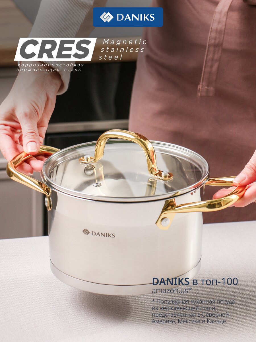 Вы можете приобрести «Кастрюля нержавеющая сталь, 2.9 л, крышка стекло, круглая, Daniks, Лайнс, SD-072-18, индукция» и другие товары в нашем интернет-магазине в Орле по низким ценам и с бесплатным самовывозом.