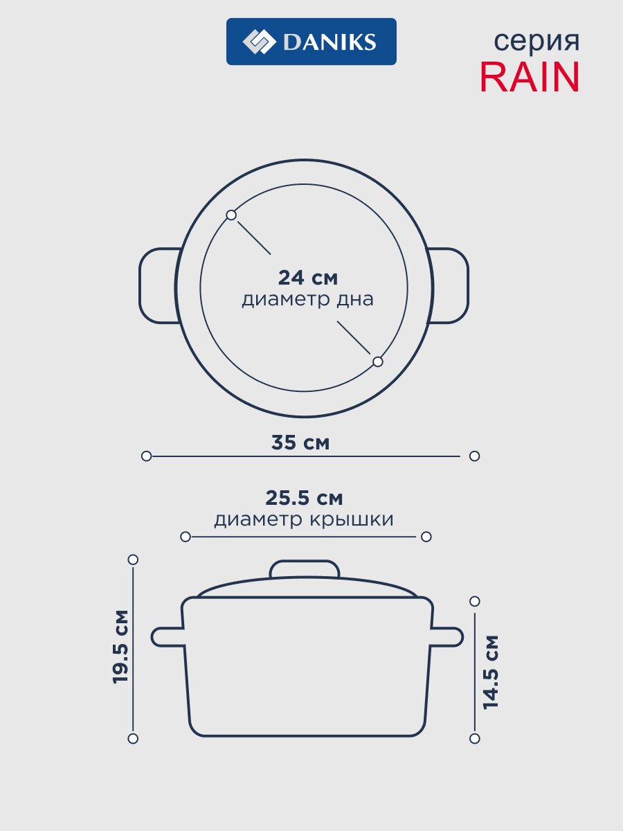 Daniks Рейн 6.5 л — это выгодное вложение для тех, кто ищет купить недорого кастрюлю для дачи или семьи: оптимальный объем, прочные материалы и год гарантии производителя. Закажите сейчас и получите универсальную кастрюлю, которая прослужит не один сезон.