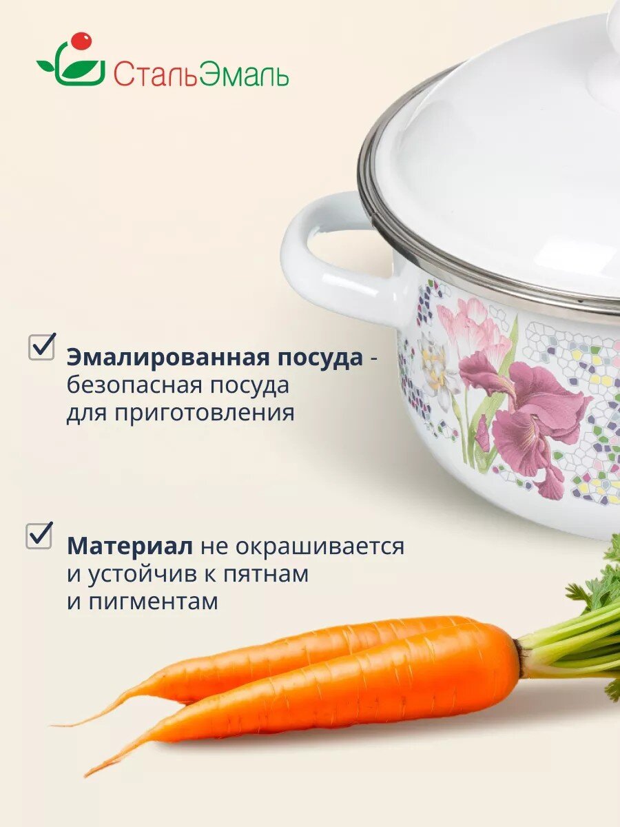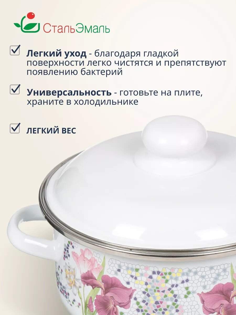 Кастрюля эмалированная СтальЭмаль Мозаика, 3 л: долговечность и стиль для вашей кухни. Подходит для индукции, легко мыть, идеальна для семьи и дачи.