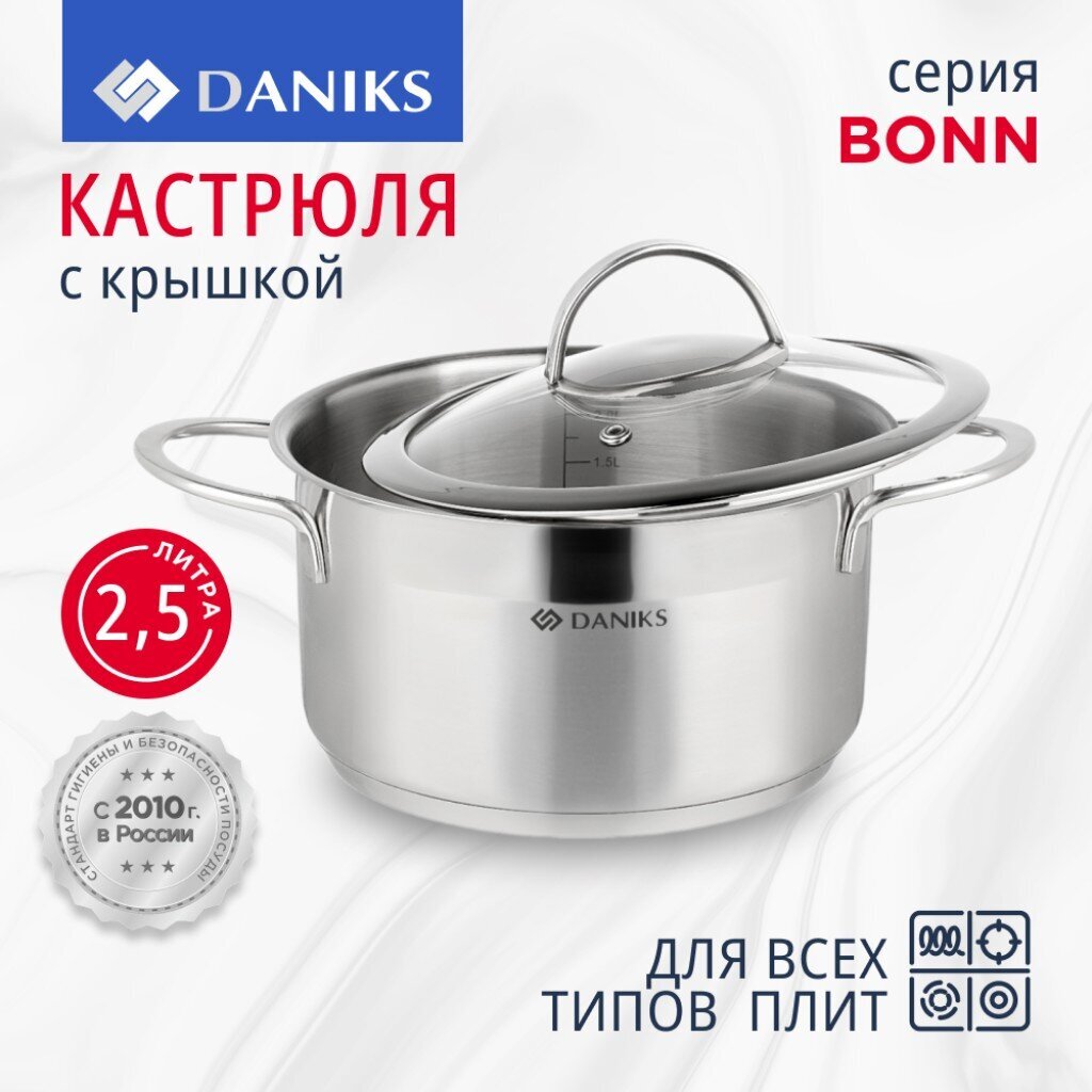 Кастрюля из нержавеющей стали Daniks Бонн 2.5 л с капсульным дном для индукции: долговечность, универсальность, стиль для кухни и дачи.