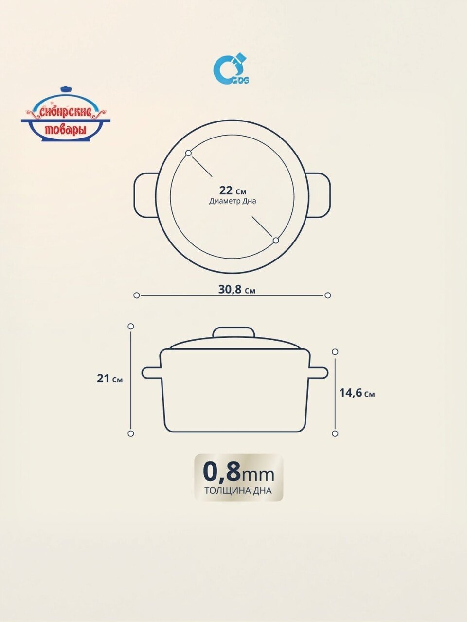 Эмалированная кастрюля 5.5 литра от «Сибирские товары» — идеальный выбор для тех, кто ищет надёжную посуду для ежедневного и сезонного использования. Благодаря прочной эмалированной стали, кастрюля устойчива к царапинам, не окисляется и не взаимодействует с продуктами. В отличие от алюминиевых и тефлоновых аналогов, эмаль не впитывает запахи и не выделяет вредных веществ при нагреве. Вопрос «подходит ли кастрюля для индукционной плиты» — полностью закрыт: плоское дно толщиной 0.8 мм обеспечивает равномерный нагрев на индукционных, газовых, электрических и стеклокерамических плитах.