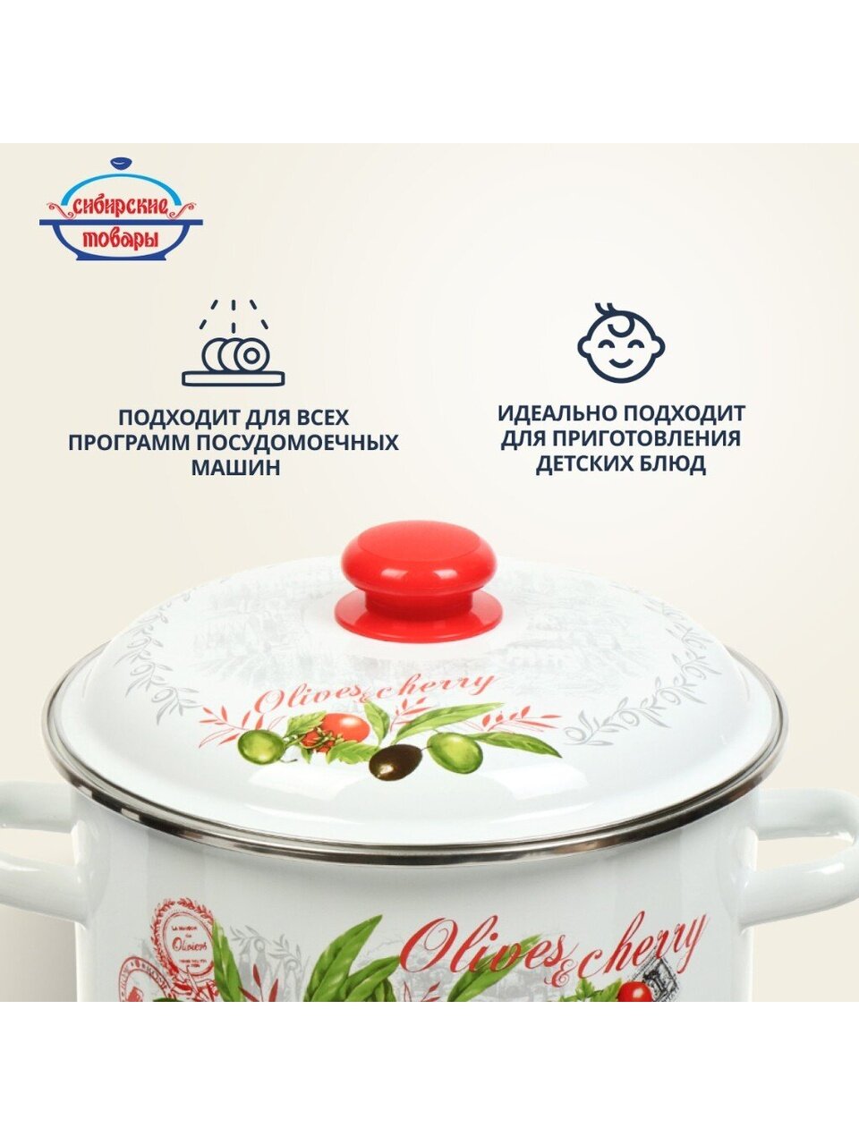 Кастрюля эмалированная 5.5 л для индукции: долговечная сталь, универсальный размер, дизайн «Оливки и черри» — выгодно для дома и дачи.