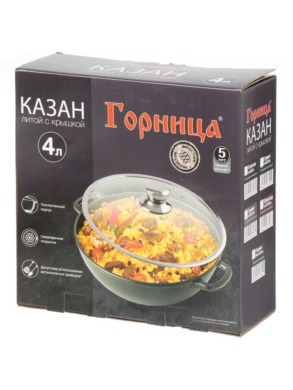 Казан изготовлен из высококачественных материалов, что обеспечивает его надежность и долговечность.