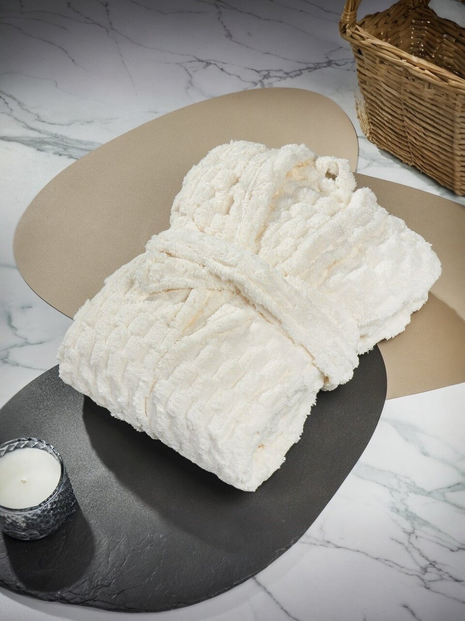 Эта модель халата унисекс идеально подходит для всех, кто ищет универсальное решение для домашнего отдыха. Размеры, соответствующие международному L и российскому 50, делают его отличным выбором для большинства покупателей. Халат станет идеальным спутником после душа или ванной, а также подарит уютные моменты во время утреннего кофе или вечернего отдыха.