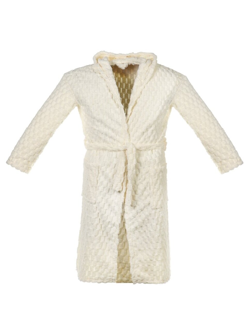 Изготовленный из 100% полиэстера, халат предлагает мягкость и долговечность, обеспечивая максимальный комфорт при носке. Длинный крой и длинные рукава создают эффект окутывания, даря тепло и уют в любое время года. Пояс-застежка и наличие капюшона добавляют практичности и удобства, позволяя регулировать посадку и защищать голову от холода.