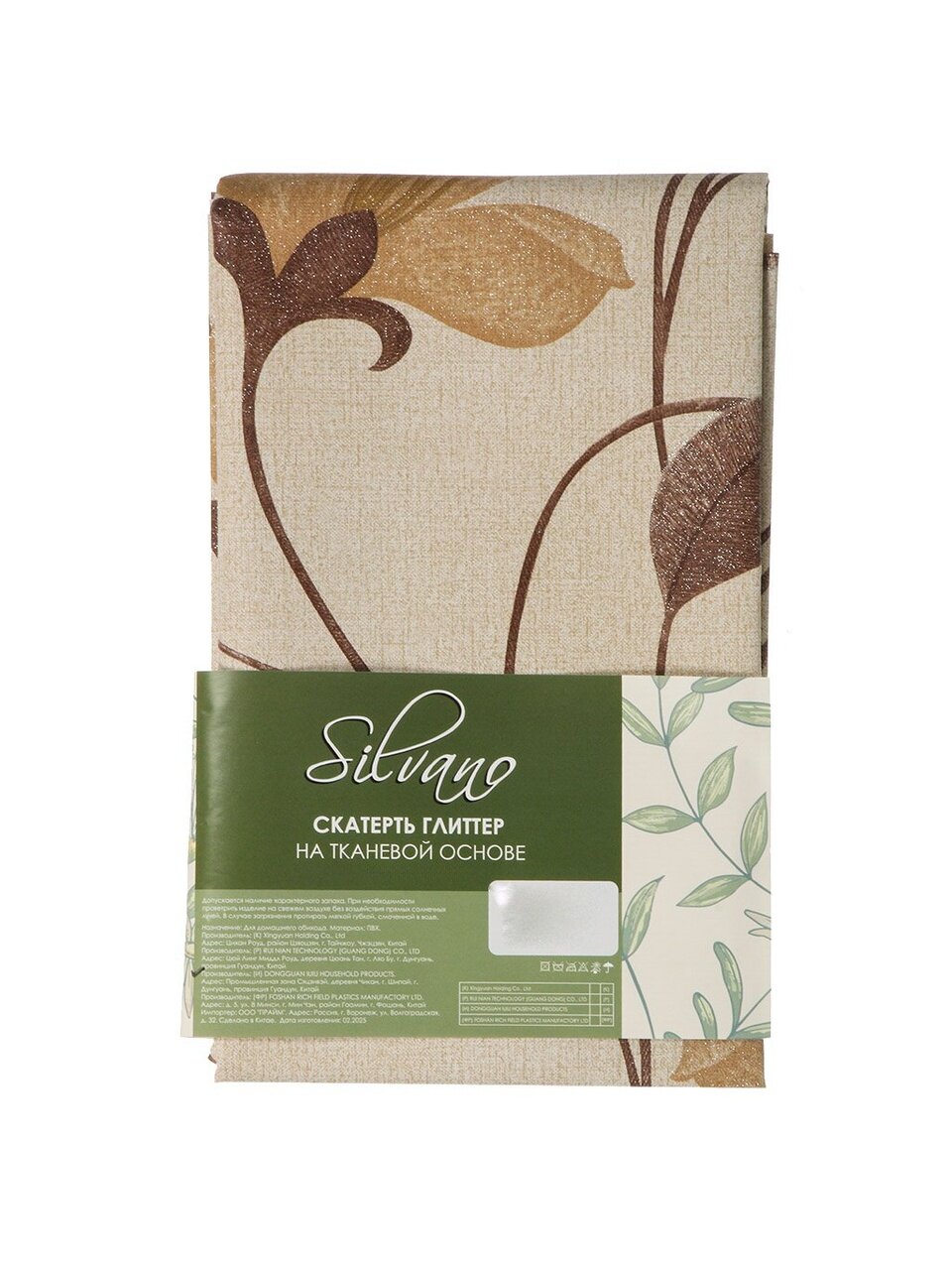 Скатерть Silvano, Глиттер, выполнена в изысканном бежевом цвете с цветочным рисунком, что придаёт ей особую утонченность и шарм. Прямоугольная форма и размеры 137 х 180 см делают её универсальной для большинства столов, обеспечивая идеальное покрытие и защиту.