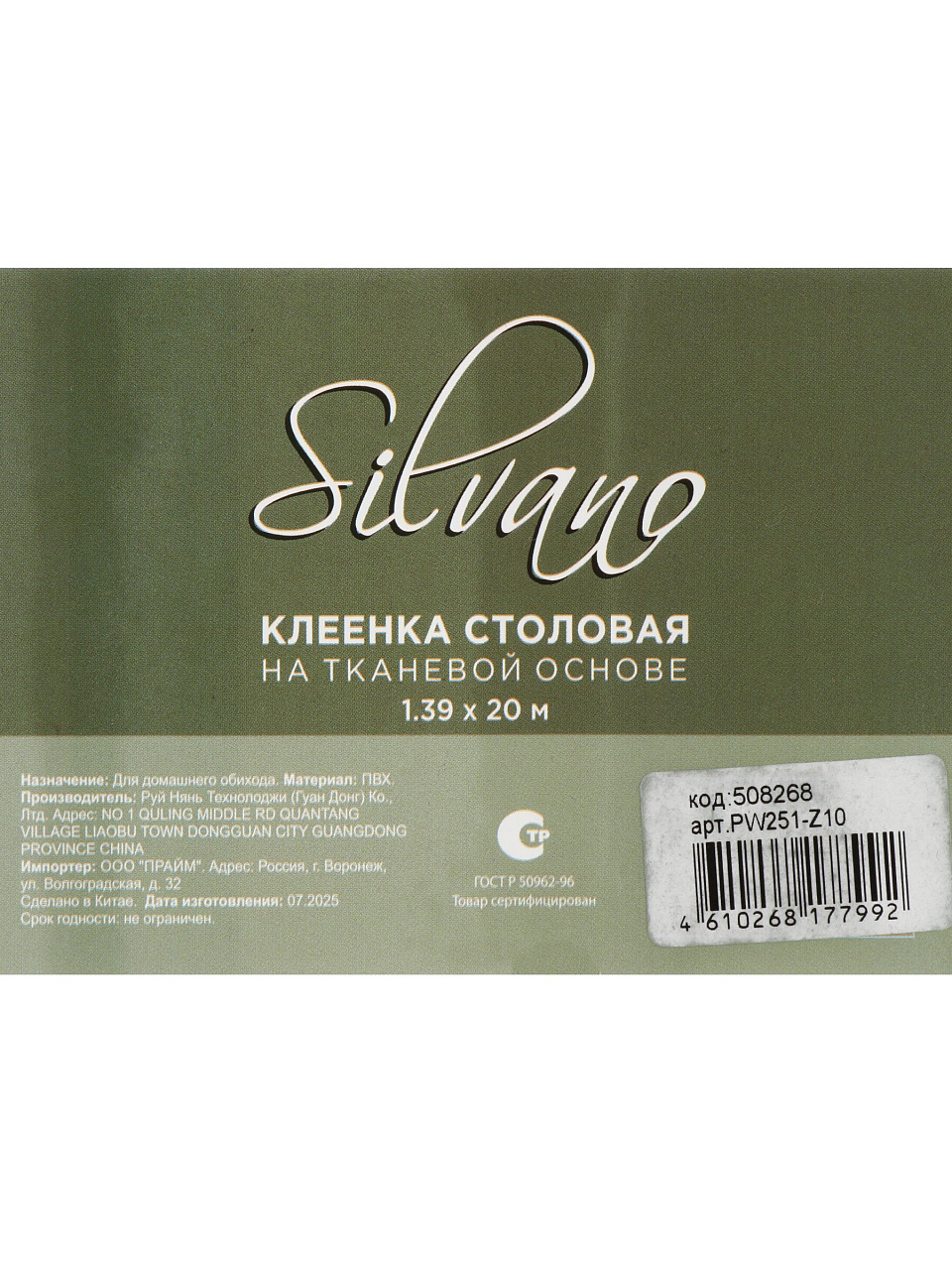 Клеенка Silvano, Гармония, 1.39х20 м, ПВХ на тканевой основе, PW251-Z10