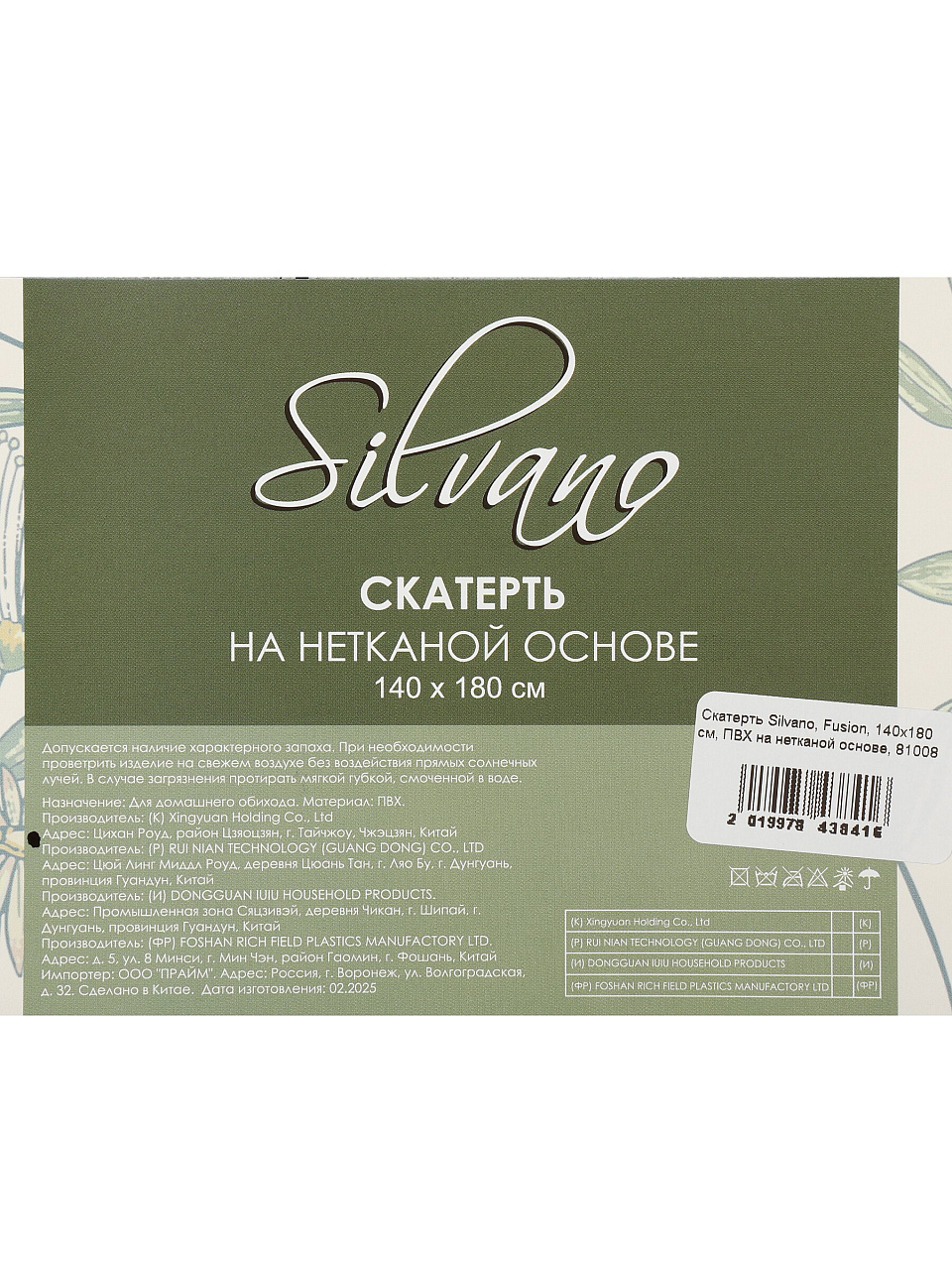 Скатерть Silvano Fusion 140х180 см: защита и стиль для вашего стола — долговечный ПВХ на нетканой основе, идеальна для кухни, дачи и подарка.