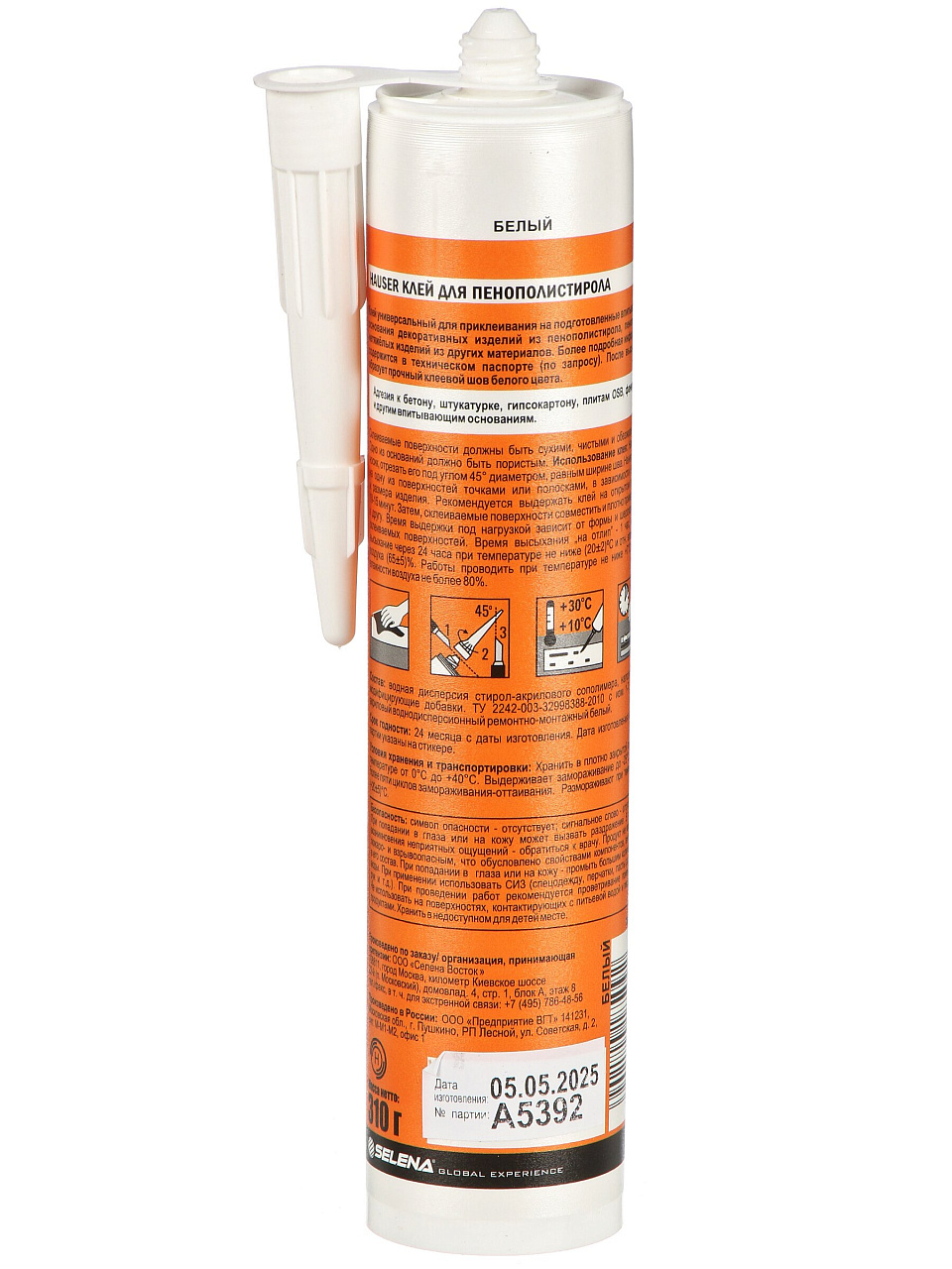 Объём 310 г, белый цвет, акриловая основа, диапазон температур эксплуатации от +10°C до +30°C, однокомпонентная формула — всё это делает его удобным и универсальным для монтажа внутри помещений.