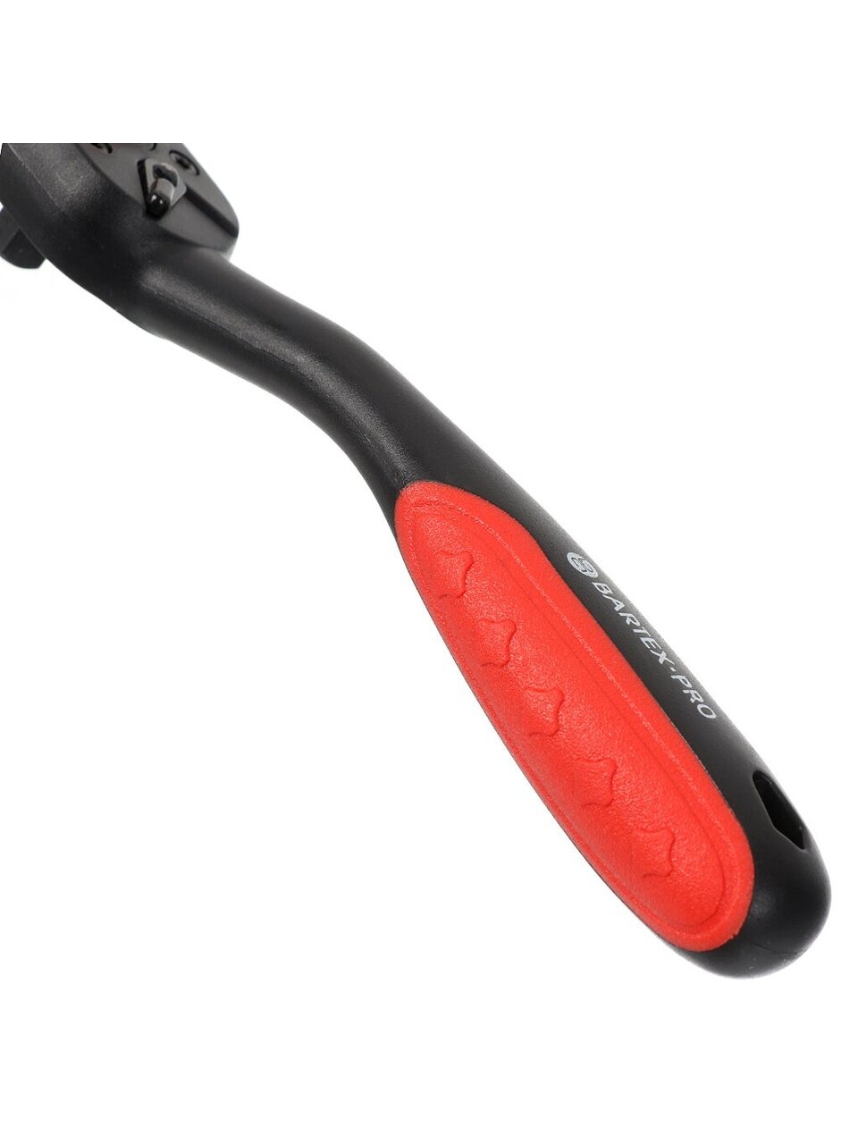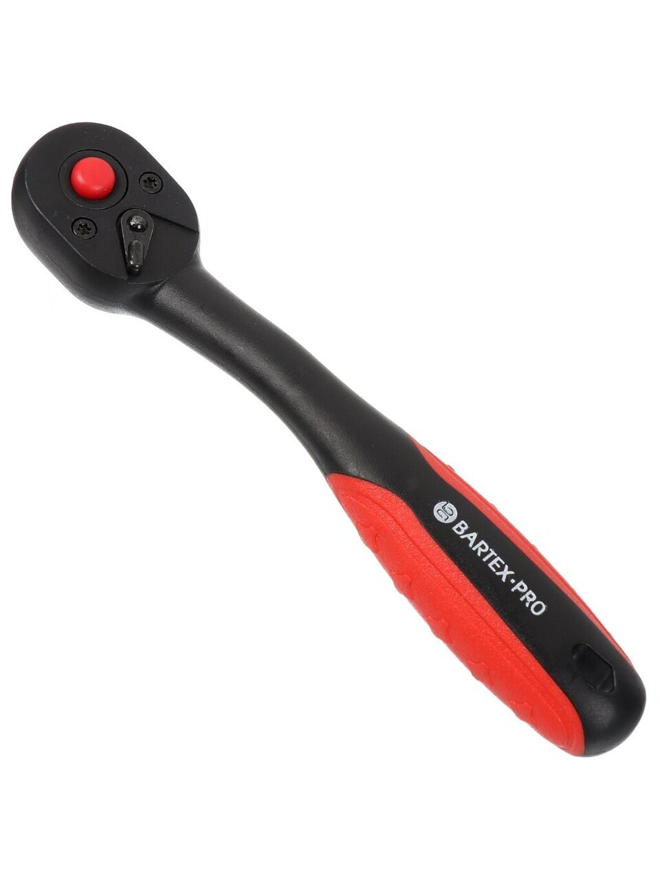 Ключ-трещотка Bartex незаменим при обслуживании автотранспорта, ремонте инженерных систем, монтаже и демонтаже крепежных элементов. Модель оснащена быстрым сбросом для легкой смены насадок. Реверс легко переключается флажковым механизмом.