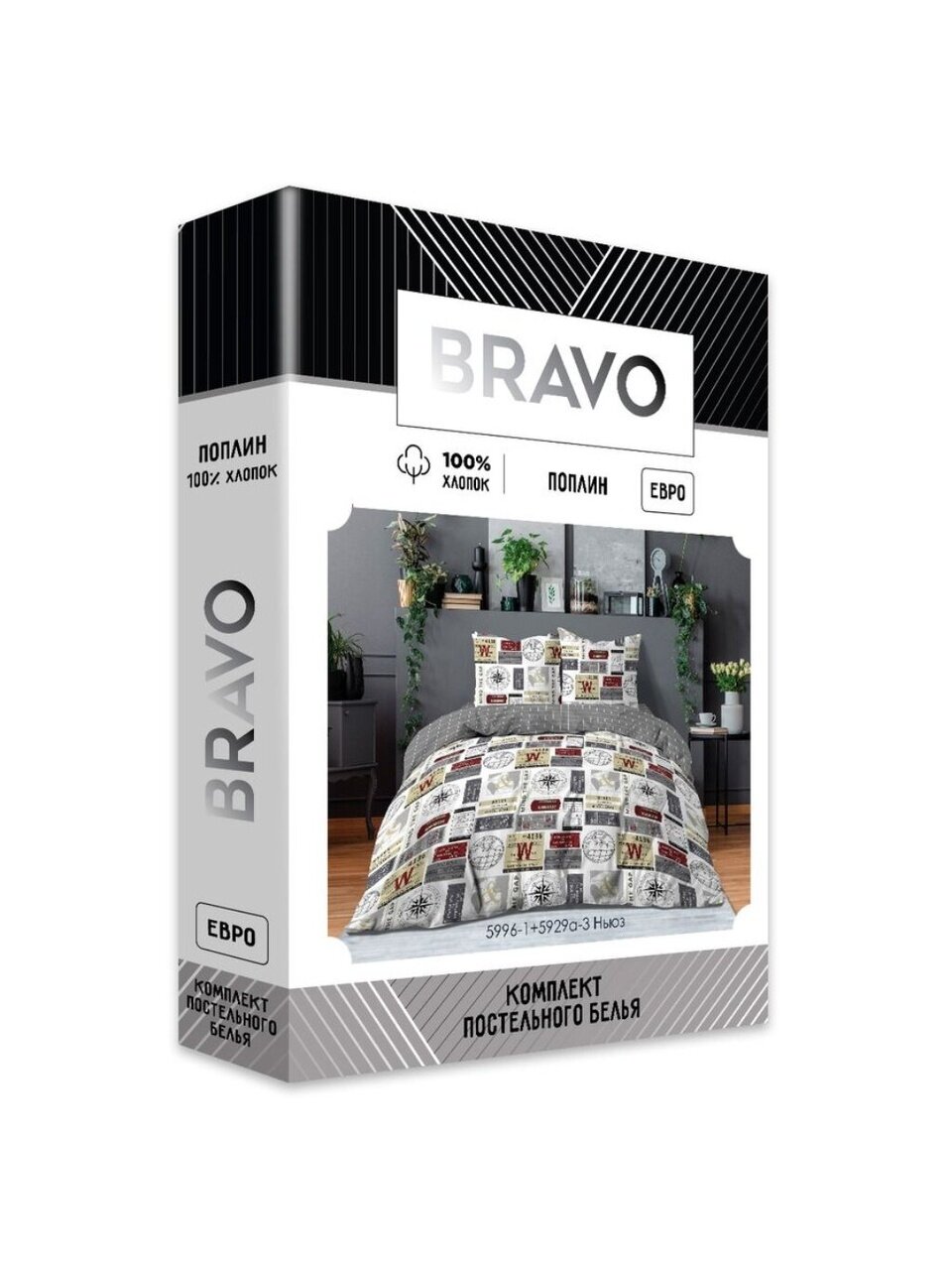 Постельное белье евро Bravo из поплина (размер простыни 215х240 см, 2 наволочки 70х70 см, пододеяльник 205х215 см) — комфорт и стиль для вашего сна, идеальный подарок в подарочной упаковке.