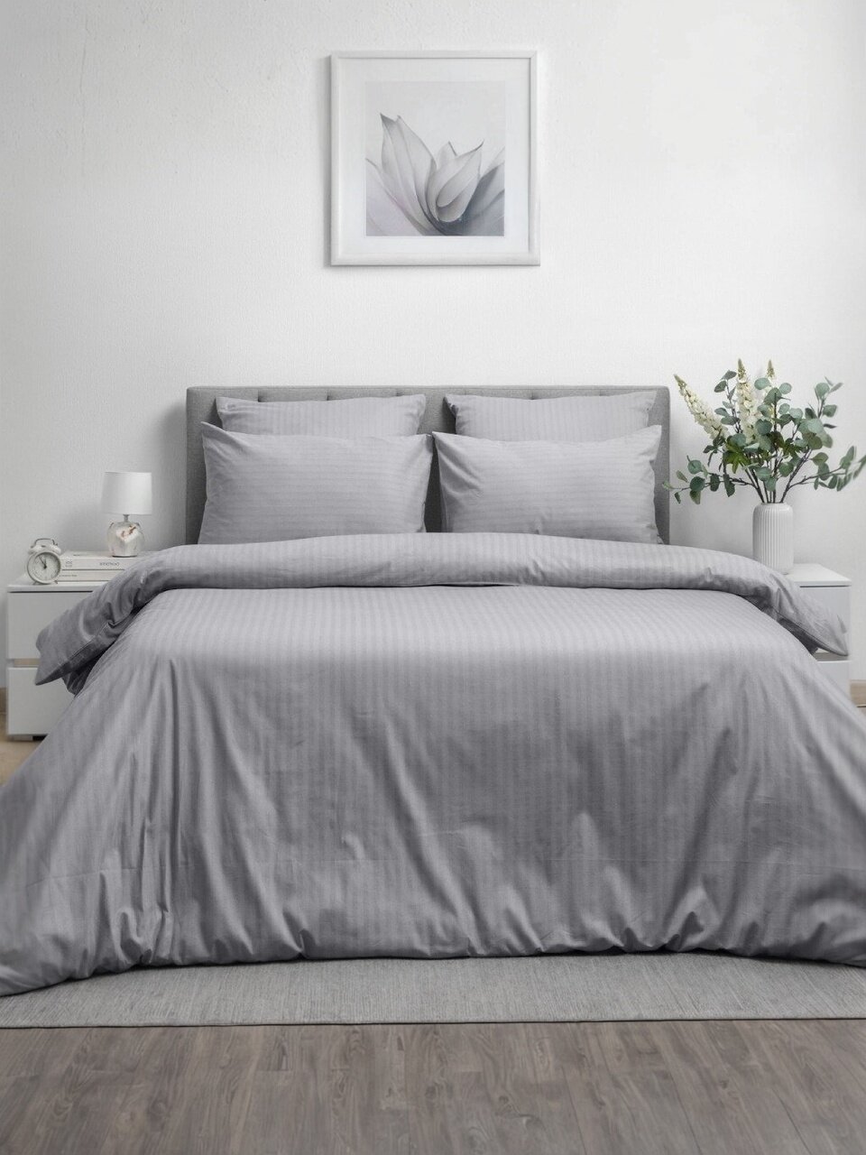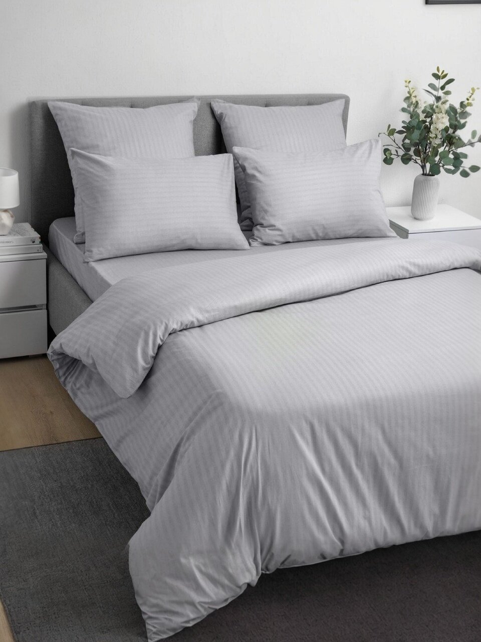 Постельное белье евро Волшебная ночь Gray Cloud 8709/3: премиальный хлопок страйп-ранфорс, размер простыни 220х240 см, подарочная упаковка, идеальный выбор для стильной спальни.