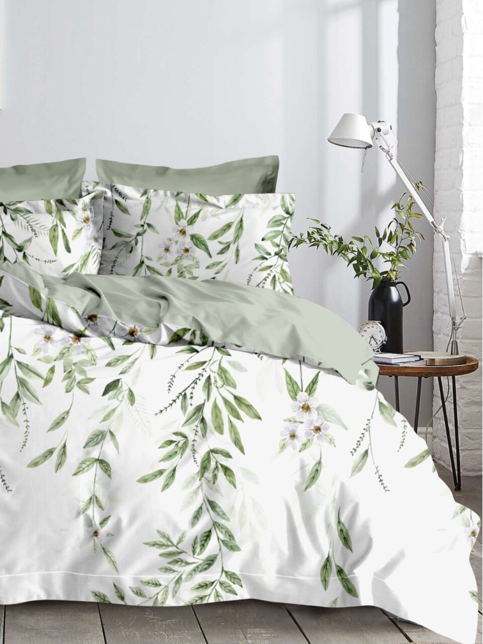 Постельное белье 2-спальное «Флора» из микросатина: свежесть зелёных оттенков, комфорт для двоих, долговечность и эффектный подарок в стильной упаковке.