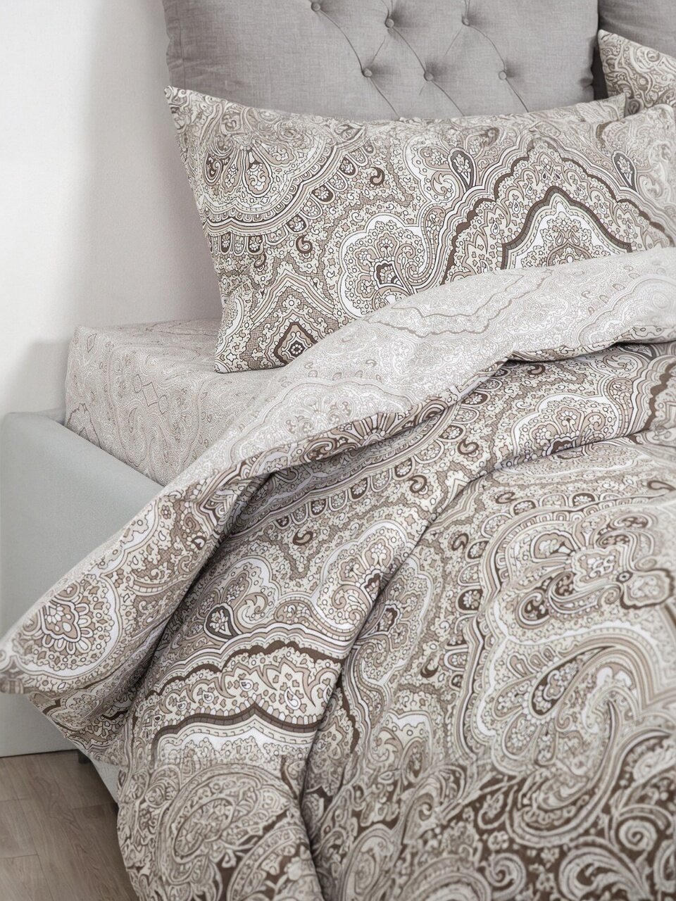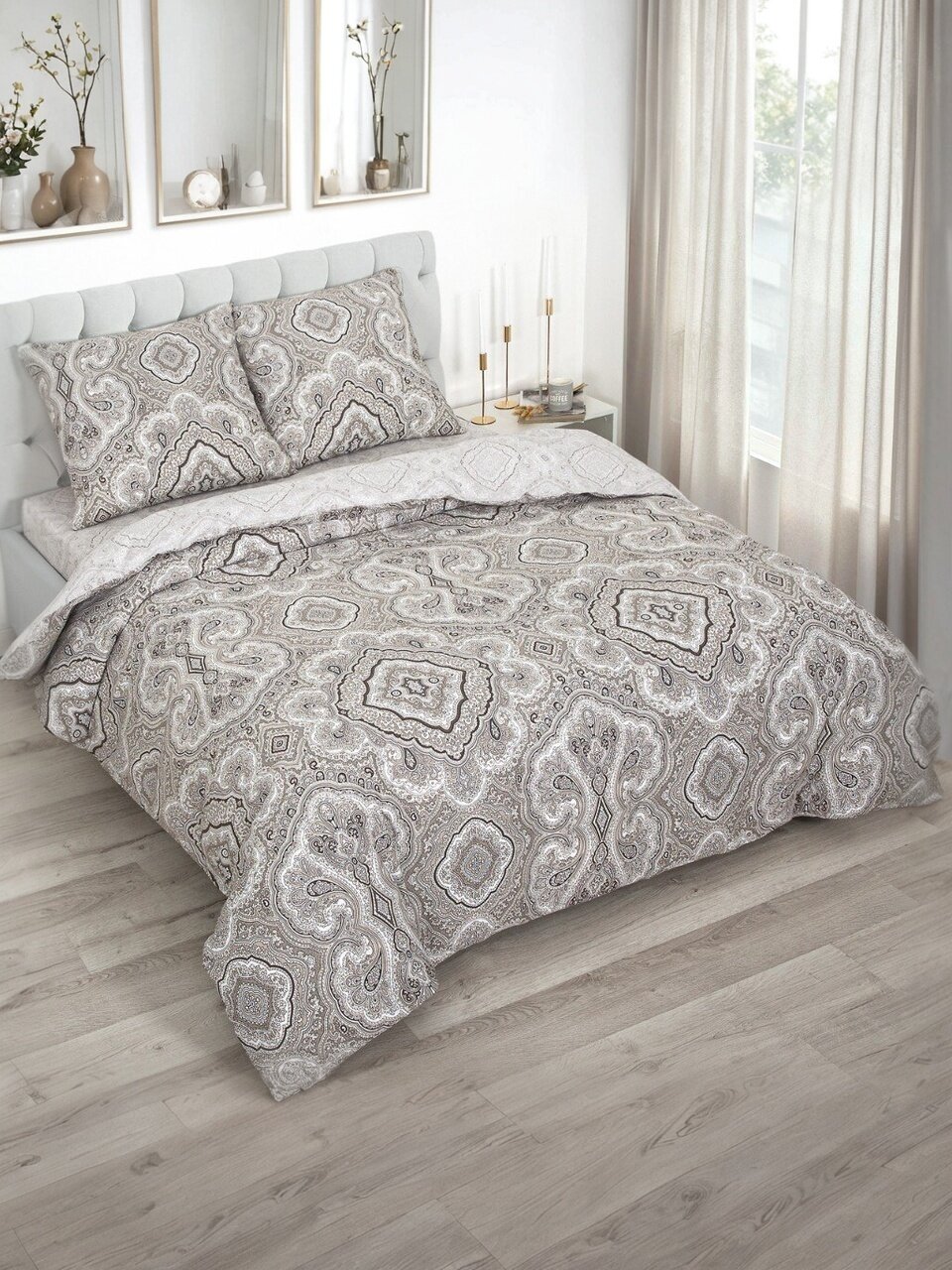 В отличие от стандартных комплектов с обычной простыней, здесь предусмотрена простыня на резинке — идеальное решение для матраса 140х200 см. Две наволочки размером 70х70 см и пододеяльник 145х215 см подходят для полутораспальных кроватей, обеспечивая полное покрытие и защиту подушки и одеяла. Серый цвет с элегантным орнаментом гармонично впишется в любой интерьер, а подарочная упаковка делает комплект отличным вариантом для подарка на новоселье или праздник.