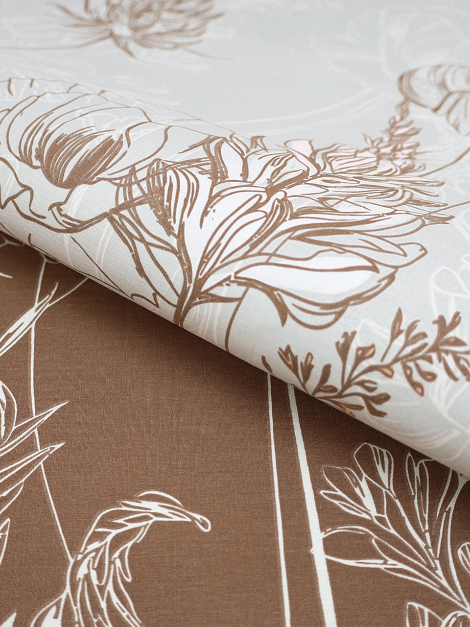 В набор включено 4 предмета: пододеяльник размером 175х215 см (без застежки), простыня на резинке 180х200 см и две наволочки размером 70х70 см. Комплект выполнен в коричневых тонах с цветочным принтом, что делает его универсальным дополнением для классического и современного интерьера.