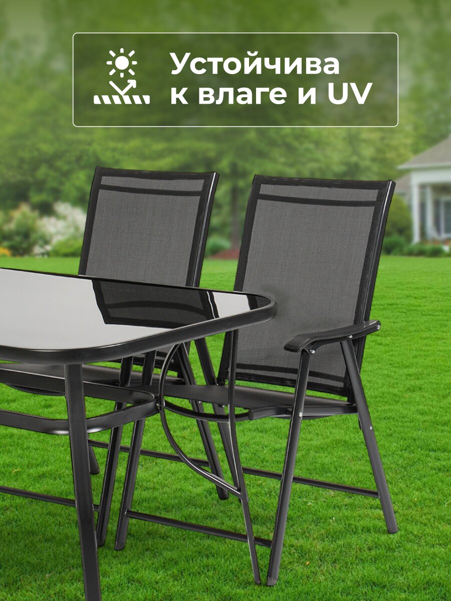 Комплект Риека отличается продуманной складной конструкцией, что обеспечивает легкость хранения и экономию пространства, особенно актуально для небольших участков или помещений. Прочное основание со стальным каркасом гарантирует долговечность и устойчивость мебели даже при интенсивном использовании, а жесткие сиденья обеспечивают надежную поддержку во время отдыха или трапезы. Максимальная нагрузка как на стол, так и на стулья составляет: 150 кг. Универсальность применения позволяет использовать комплект не только на даче или в саду, но и в кафе, на кухне или в доме, делая его практичным выбором для любого пространства.