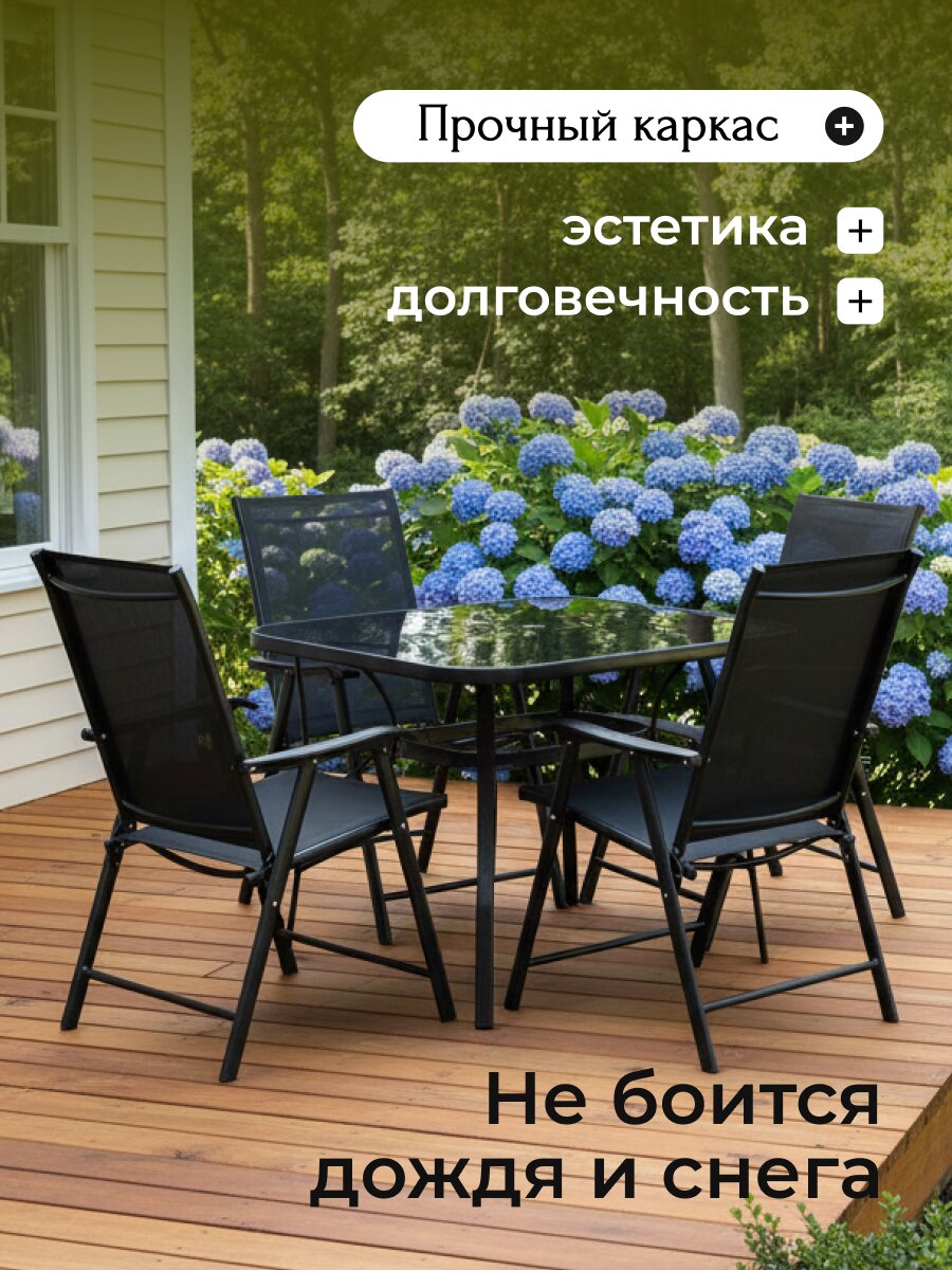 Оцените стиль и функциональность с мебельным комплектом Риека — идеальное решение для обустройства уютного уголка на даче, в саду, на террасе или даже в интерьере кухни и дома. Комплект состоит из пяти предметов: прямоугольного стола размером 120х80х70 см и четырех удобных стульев с жестким сиденьем из теслина (59х58х95 см), что позволяет комфортно разместить компанию из четырех человек для семейных обедов, встреч с друзьями или отдыха на свежем воздухе. Современный черный цвет гармонично впишется в любой ландшафт и интерьер, подчеркнет вкус владельца и придаст пространству актуальный вид.