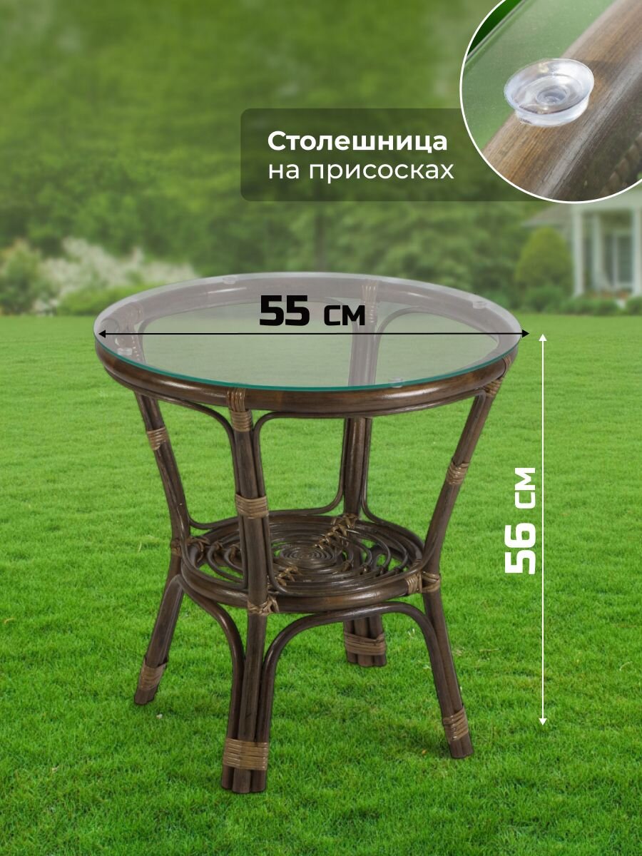 Плетеная мебель — это неповторимый стиль и уютная атмосфера, создающая умиротворенность и расслабленность. Лоза ротанга чарует своей невероятной теплотой и декоративностью. Легкое ажурное переплетение ротанга и прозрачная стеклянная столешница придают мебели невесомый, воздушный вид.