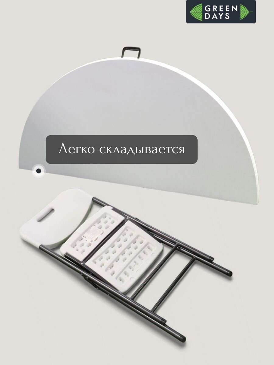 Благодаря мобильности данную мебель можно с легкостью передвигать в затененные места, спасаясь от летней жары. За счет полой конструкции столешницы — очень легкий. Складной механизм убирается внутрь столешницы и имеет защитные протекторы на ножках.