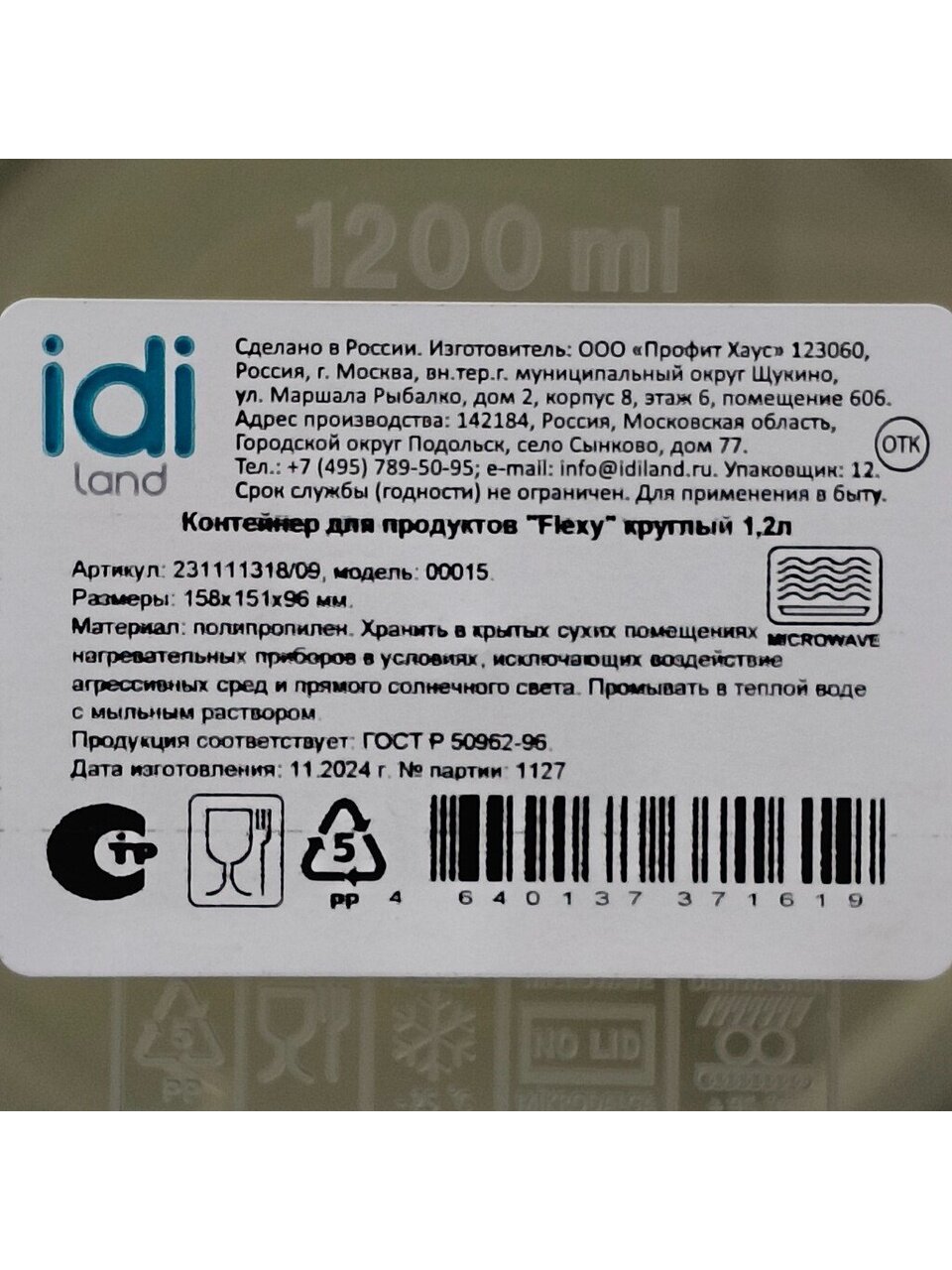 Контейнер пищевой пластиковый 1.2 л IDIland FLEXY — ваш универсальный помощник для хранения и транспортировки продуктов: свежесть, компактность, стильный дизайн.