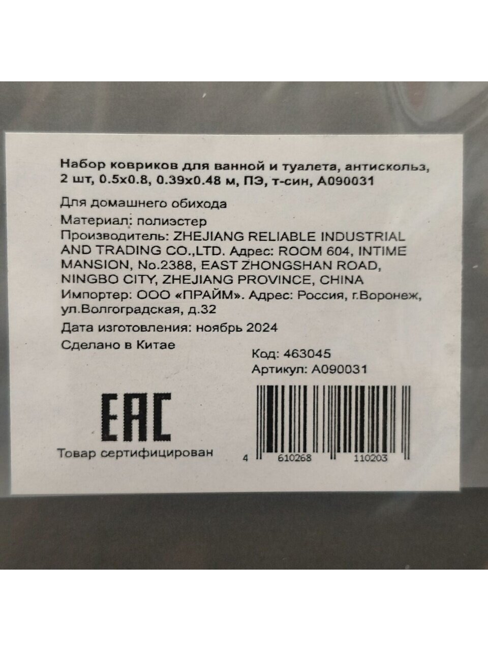 Вы можете приобрести «Набор ковриков для ванной и туалета, антискользящий, 2 шт, 0.5х0.8, 0.39х0.48 м, полиэстер, темно-синий, A090031» и другие товары в нашем интернет-магазине в Россоши по низким ценам и с бесплатным самовывозом.
