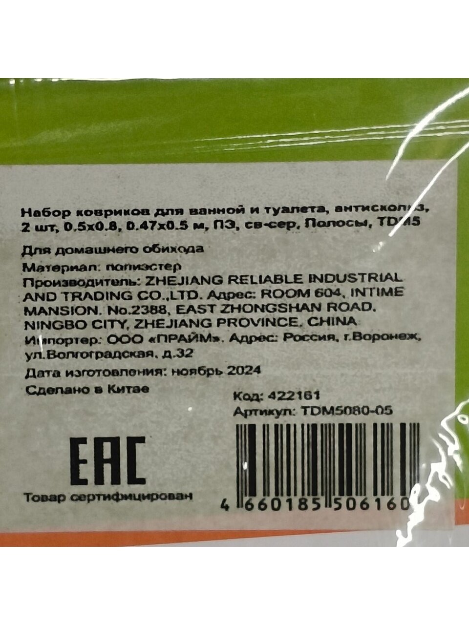 Вы можете приобрести «Набор ковриков для ванной и туалета, антискользящий, 2 шт, 0.5х0.8, 0.47х0.5 м, полиэстер, светло-серый, Полосы, TDM5080-05» и другие товары в нашем интернет-магазине в Орле по низким ценам и с бесплатным самовывозом.