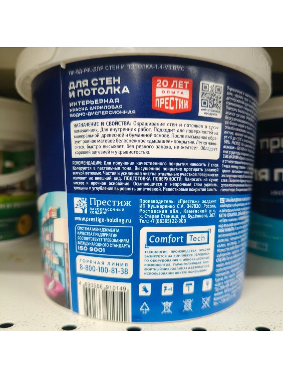 Вы можете приобрести «Краска водно-дисперсионная, Престиж, W3 ВД-АК-212, акриловая, интерьерная, матовая, супербелая, 1.4 кг» и другие товары в нашем интернет-магазине в Обнинске по низким ценам и с бесплатным самовывозом.